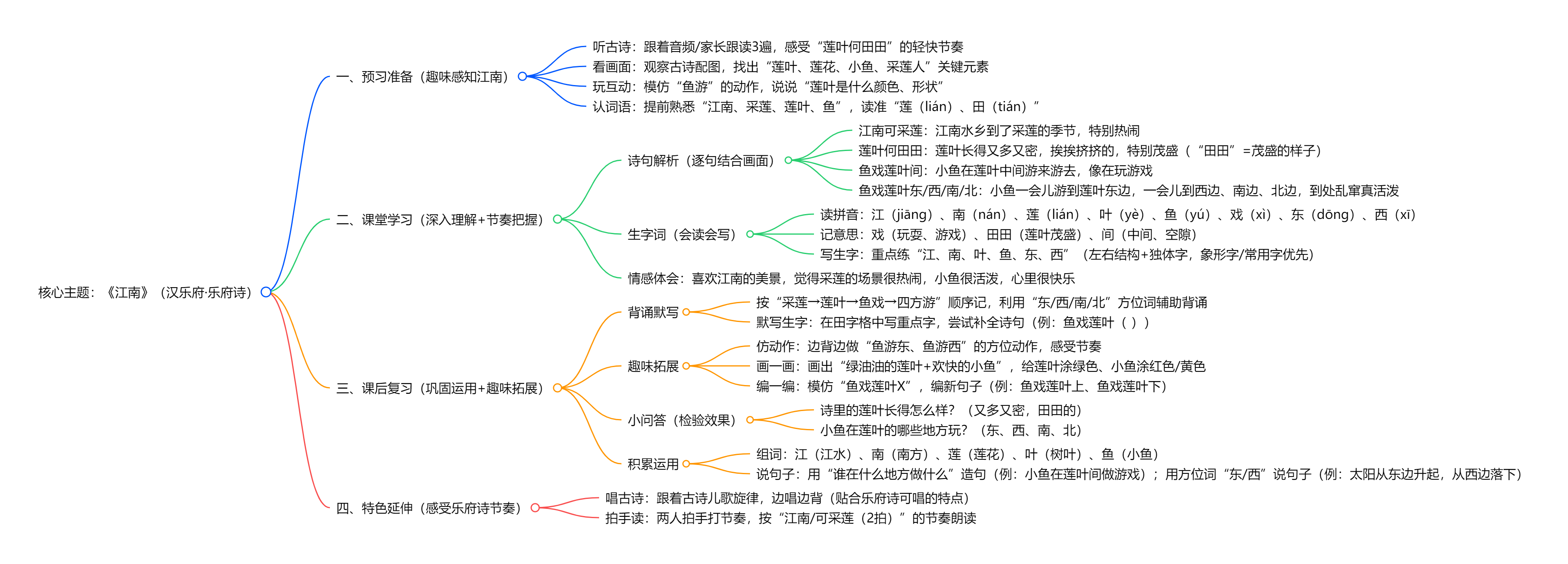 为了帮助小学一年级学生,更好地学习《江南》,给大家分享一份实用的思维导图。