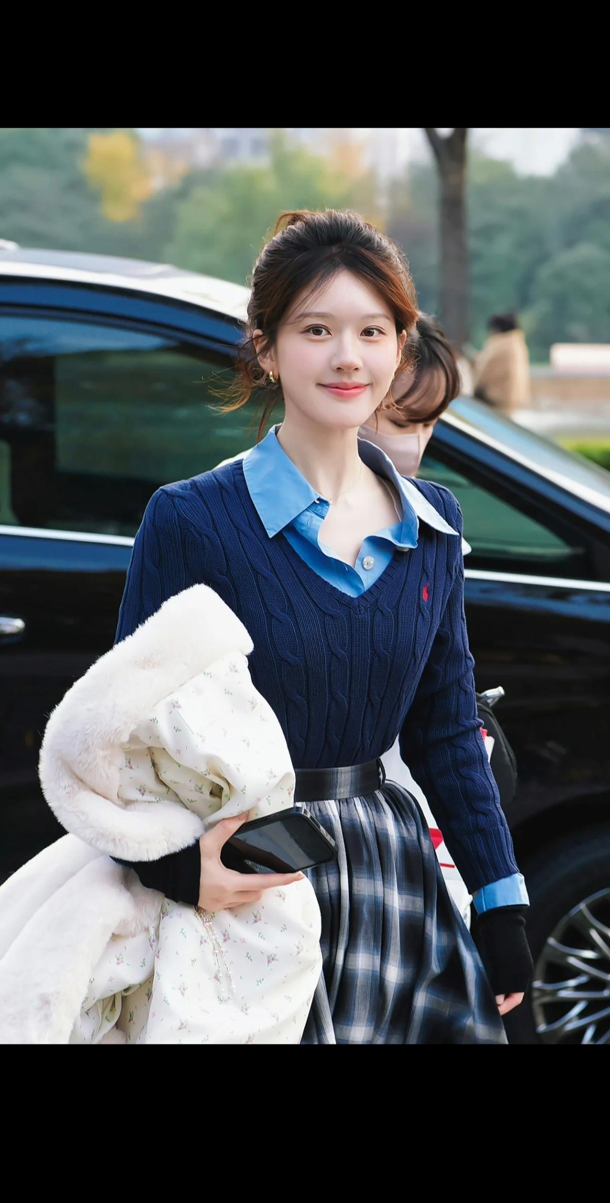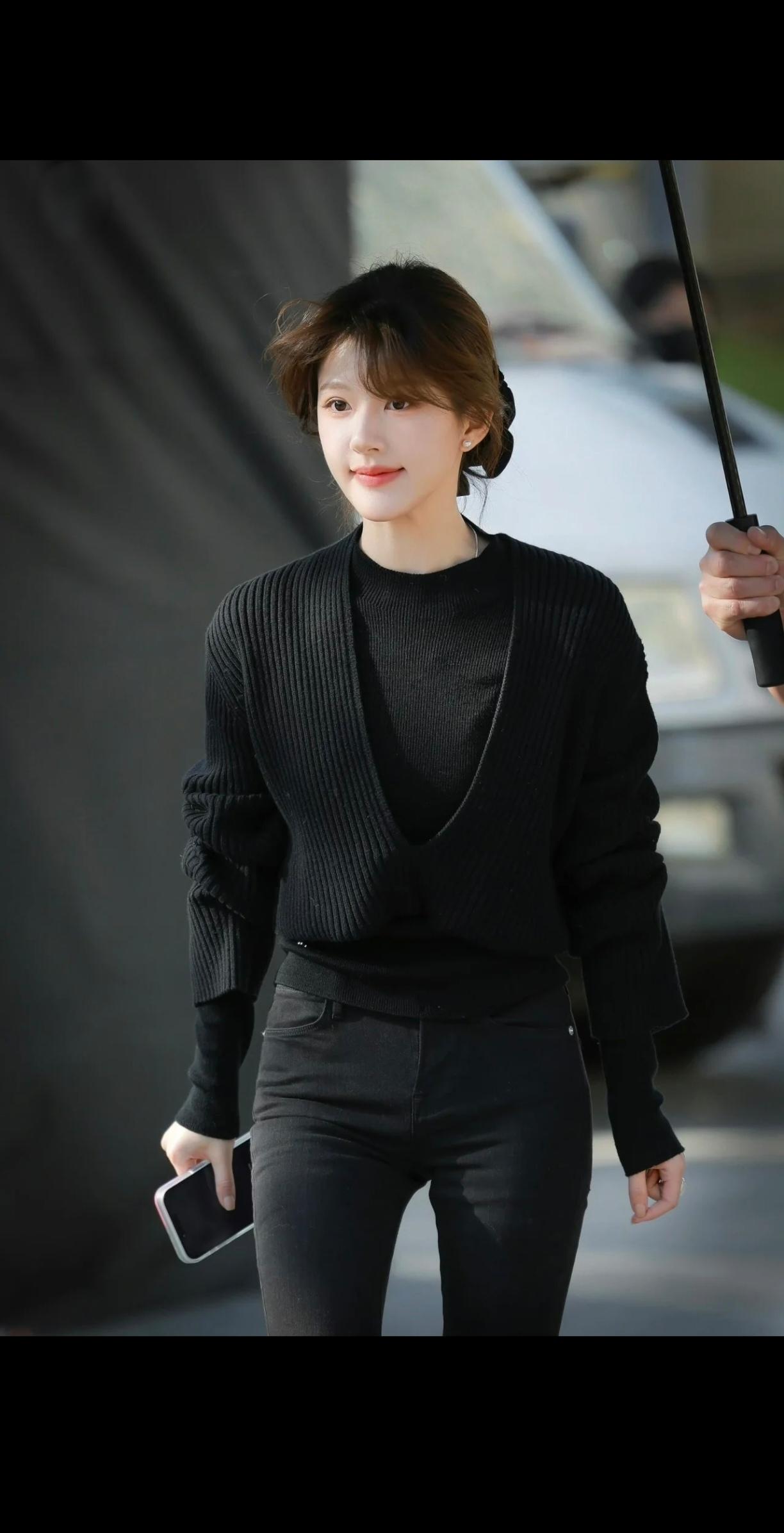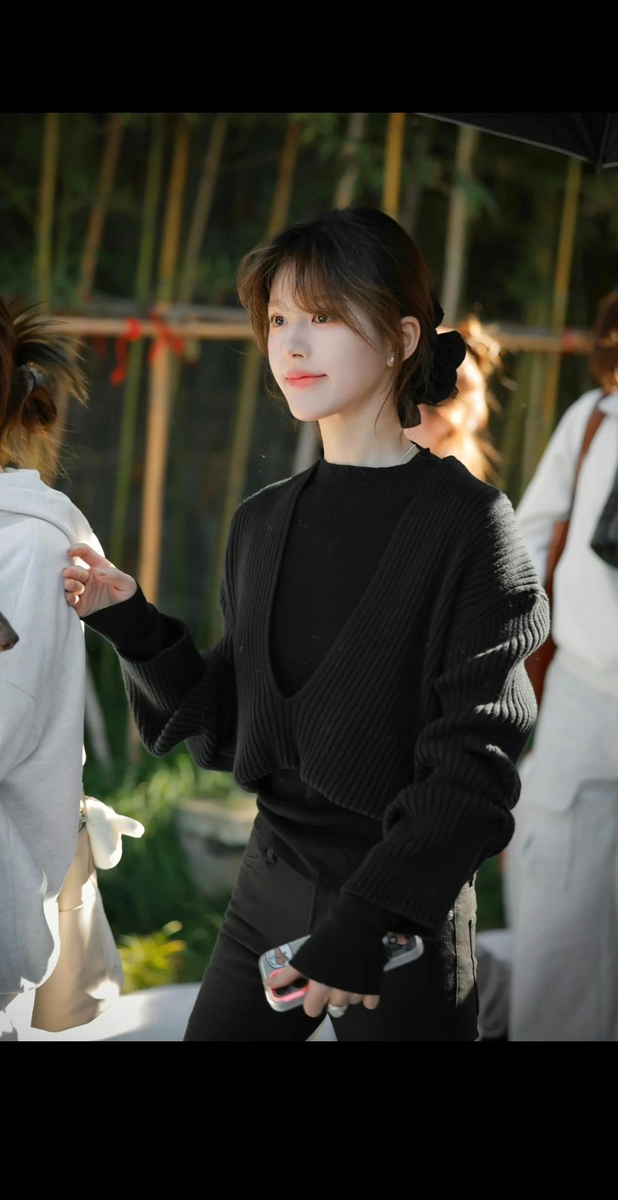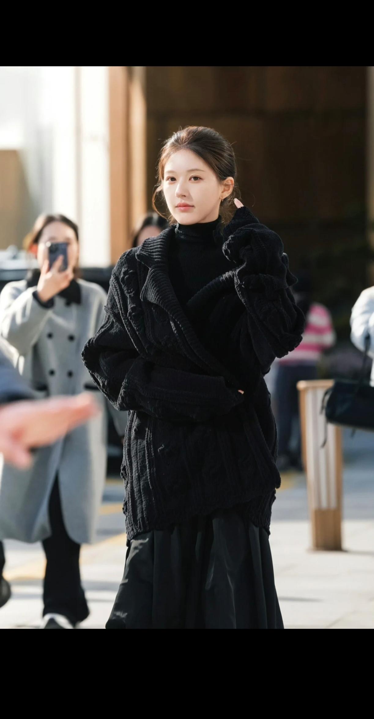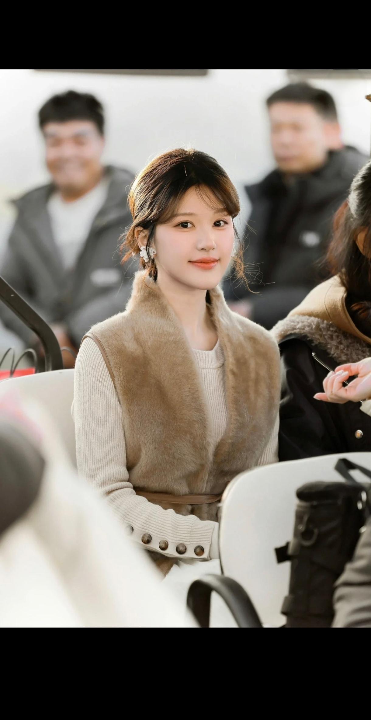蔡文静这机场私服也太会了吧!露肩毛衣小露香肩,又纯又欲的feel拿捏得刚好,波点