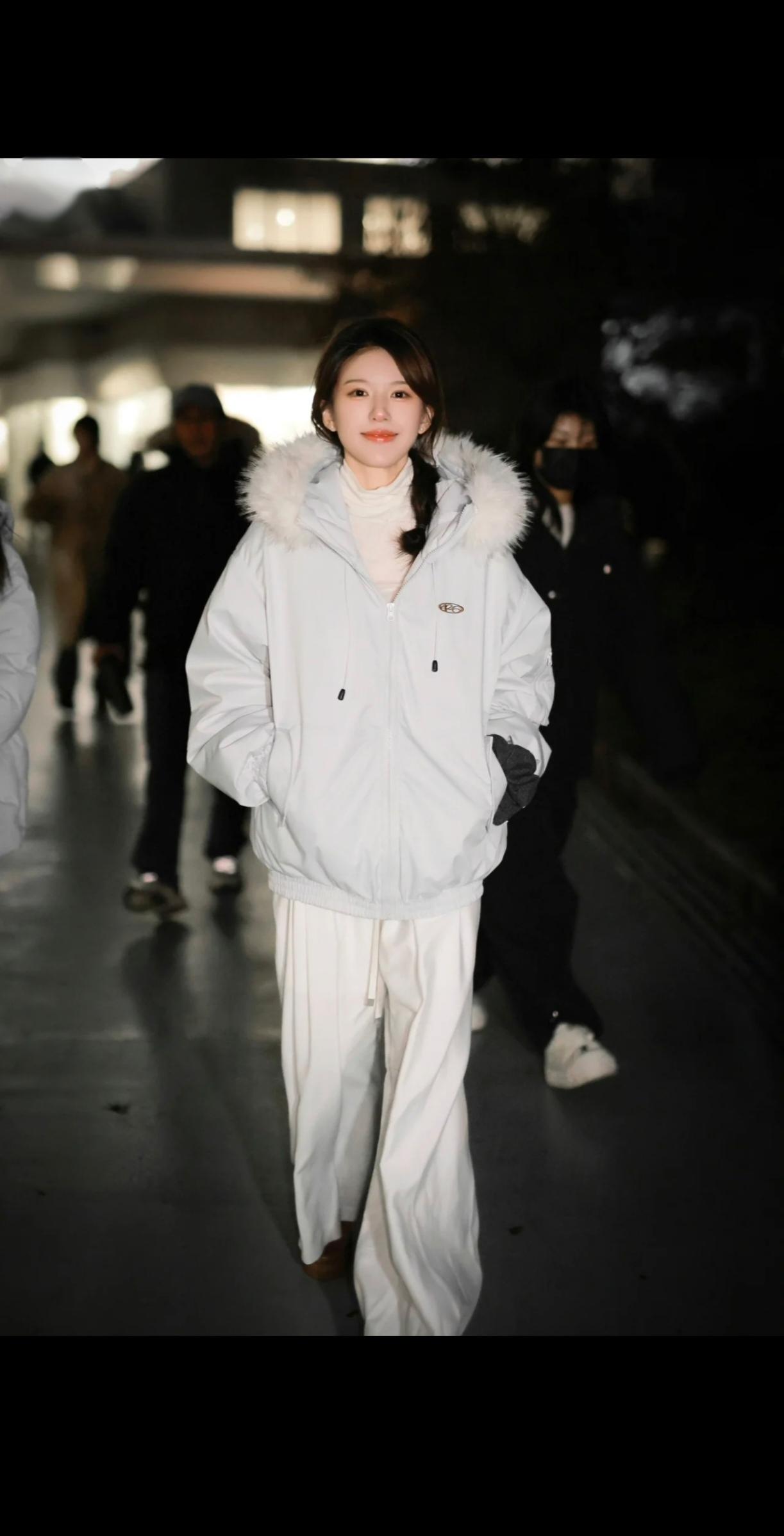 张天爱跟素人合影,胯真的好宽,大宅院似的
