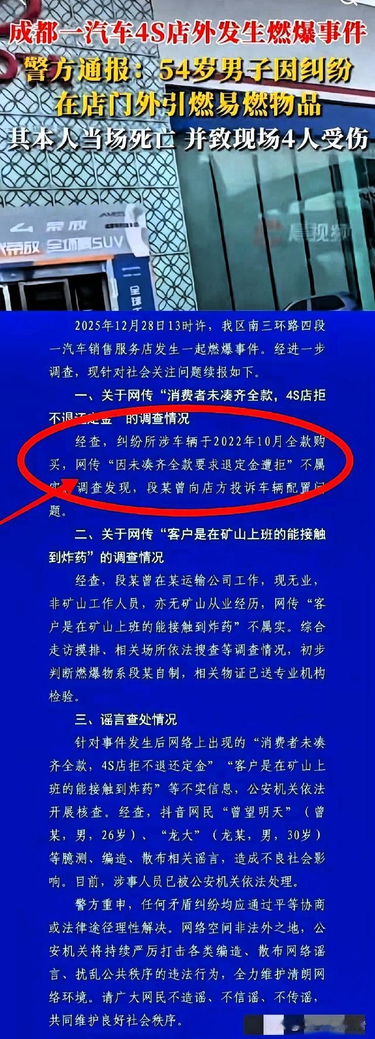 成都那个大哥的事,大家都看到了。 不是没钱付尾款,人家早就给了全款。就为了一个配置问题,硬生生被拖了三年。谁都听过那套标准说辞:“抱歉我没权限”,“只能等”。说白了,就是把你当皮球踢。三年里,他跑了不知道多少趟。每一次去,心就凉一截。那天下午的巨响,是一个普通人被耗干的最后声音。 这种事儿太多了。去年有个朋友买车,说好三个月提车,结果半年过去都没动静。每次打电话问,销售都客客气气说“正在协调资源”、“快了快了”。后来才知道,那款车根本没排产,4S店就是为了锁单,把钱先拿到手再说。他耗了八个月,最后只能退款了事,什么赔偿都没有。时间、精力全搭进去了。 买车的合同,密密麻麻好几页,有几个普通人会逐条看完?销售口头承诺的天花乱坠,什么“肯定最快给您”、“这个配置没问题”,一到纸上全变了味。出了问题,他们指着合同里的小字说:“您看,这里写了以实际到货为准。”你一点办法都没有。老百姓攒钱买个大件,图的不是一肚子气。 打投诉电话有用吗?很多时候就像一拳打在棉花上。你找厂家,厂家让你找4S店。你找4S店,他们说按厂家流程来。12315介入,调解也要时间。等调解结果出来,人早就筋疲力尽了。维权的成本太高,高到很多人最后只能认栽,自己咽下这口气。 那个大哥用最极端的方式,把这口气吐了出来。我们不该只叹息一声就划走。这件事戳破了一个真相:有些商家的冷漠,能把人逼到绝路。他们眼里只有流程、规定和推卸责任,早就忘了对面站着的是个活生生的人。生意不是这么做的。人心要是凉透了,什么都补不回来。 各位读者你们怎么看?欢迎在评论区讨论。