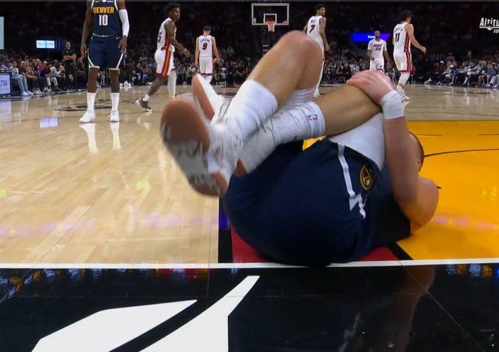 约基奇左膝受伤,本场比赛不会回归!掘金vs热火