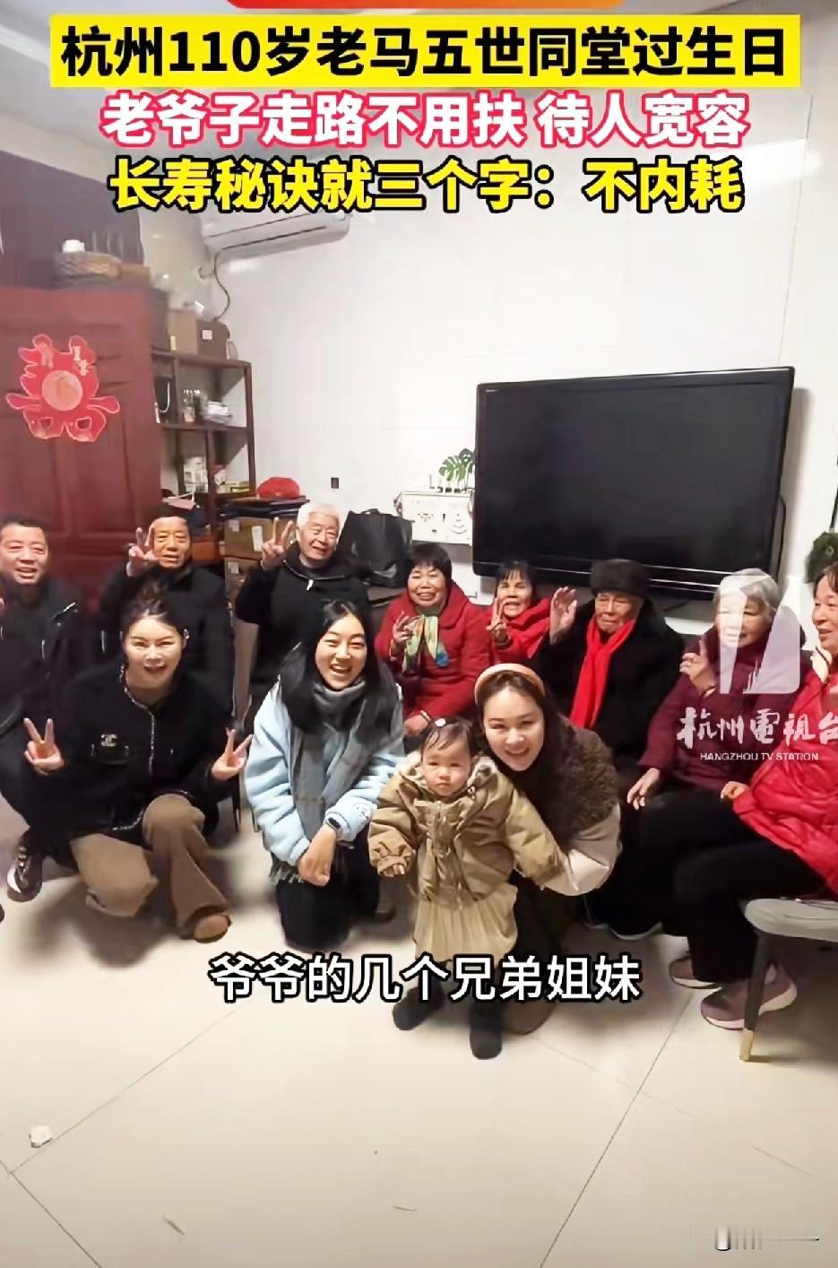 相差108岁,2个龙宝宝同框啦![鼓掌] 子孙福报五世同堂,这是一个跨世纪的同框拥抱啊!110岁的老爷爷这身体太好了,不聋、不哑,能走能动,行动自如,好幸福的一家人! 12月29日,浙江杭州一位1916年,丙辰龙年出生的老人迎来109周岁生日,他怀抱2024年甲辰龙年出生的玄孙女,跨世纪的相遇既是血脉的相传,也是亲情和缘分的相遇。 视频发出后引来大量网友关注和热议,收到最多的就是网友对爷爷的祝福和问好,也有网友好奇爷爷已经110岁了,身体怎么还能这么好呢? 爷爷的孙女给出了答案,主要是爷爷心态好,比较包容,不计较,不内耗,不在乎得失,平时爱养花,晚辈们也非常孝顺,所以爷爷每天心情特别好。 看看老人们活的多通透,大家也应该放平心态,看淡一切,拒绝精神内耗,活出自我!别考虑的太多,把自己累坏喽!百岁祖孙情 龙合影 龙合照