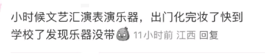 小时候文艺汇演表演乐器,出门化完妆了快到学校了发现乐器没带