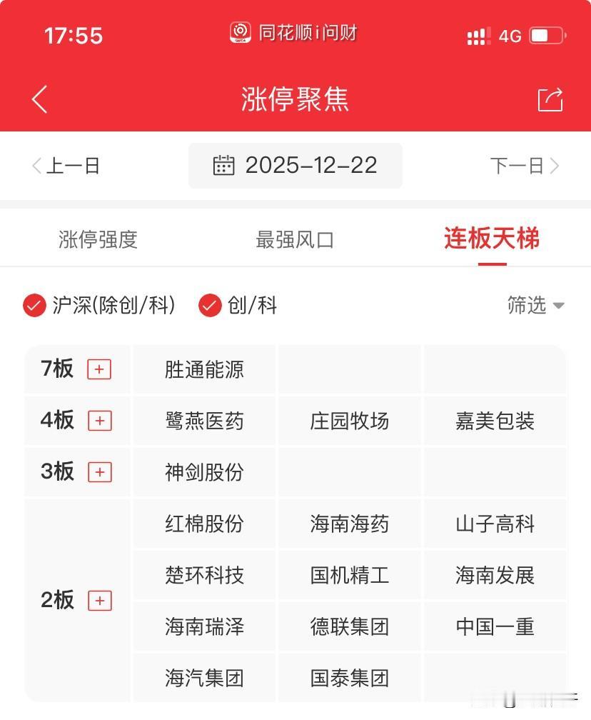盘面两大特点,一是靴子落地的海南反倒在闭关落地后,板块接近涨停,量化平铺,游资捡货,最高板在海南发展、海药、海汽;二是指数是红阳。 连板方面,真的不好做了,极度不好做。连板天梯里,一字破局就交给胜通了;4板三只票,庄园、燕子都是产业链票,嘉美,跟胜通;三板,唯一一只,神剑,商业航天唯一活口,下午挖坑洗盘后回封,周五的二三板,产业链定义的节点是周四百大断板预期二板节点,舍弃了中天,而选的是庄园,中天舍弃后,预示百大、永辉等都会慢慢退出。二进三里,航天、自驾概念的华体被放弃,神剑成为活口的原因是大资金承接了。 二板,德联、楚环、红棉,基本都没啥看头,产业链太黑了,不要跟;低于50亿盘子的不要去,那些产业链、三板明牌的营业部有关不要去。海南,共振第一天,太一致,而且量化平铺了,再看看里面的强者和可持续性的标的。 连板不好做,适当转一下趋势,航天、核电、自驾,都有明显的趋势股,而且大部分正调整,调整到支撑位可以考虑买入。