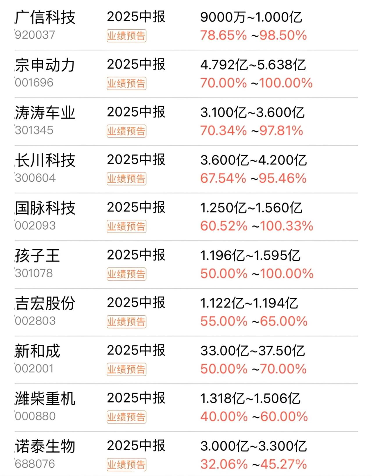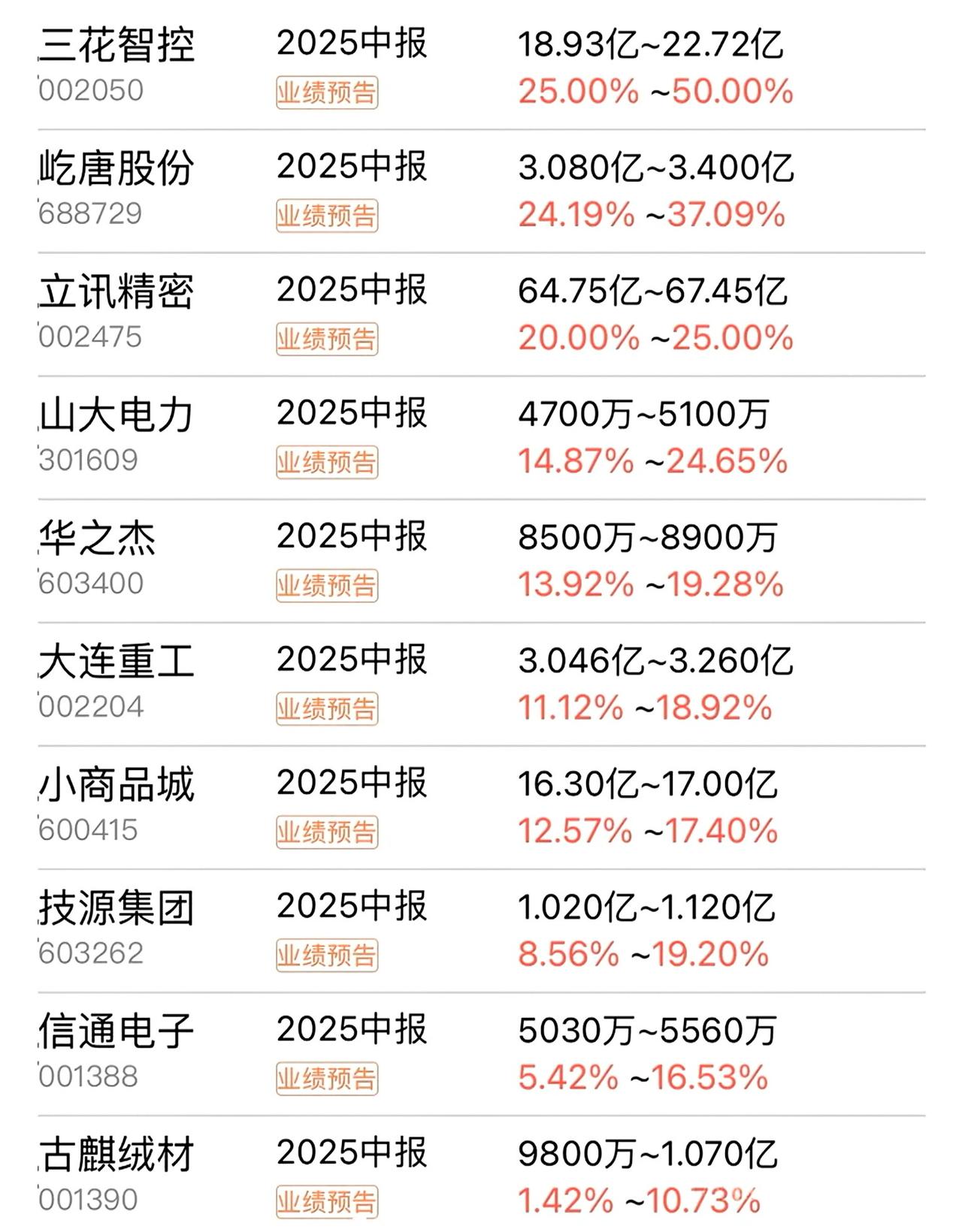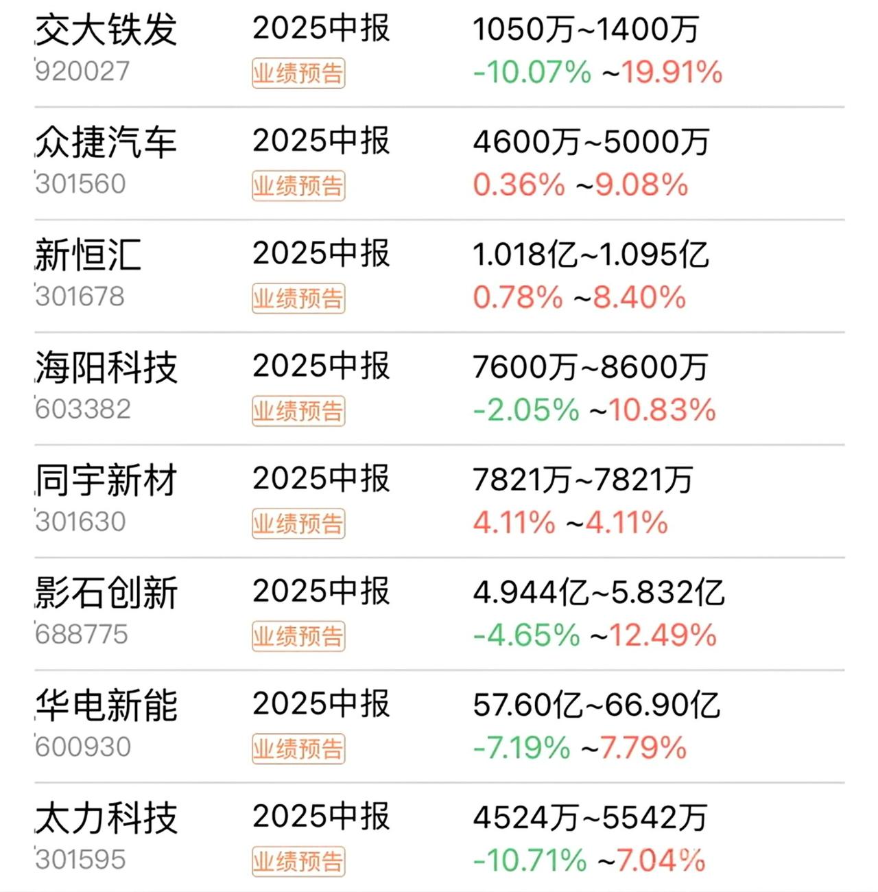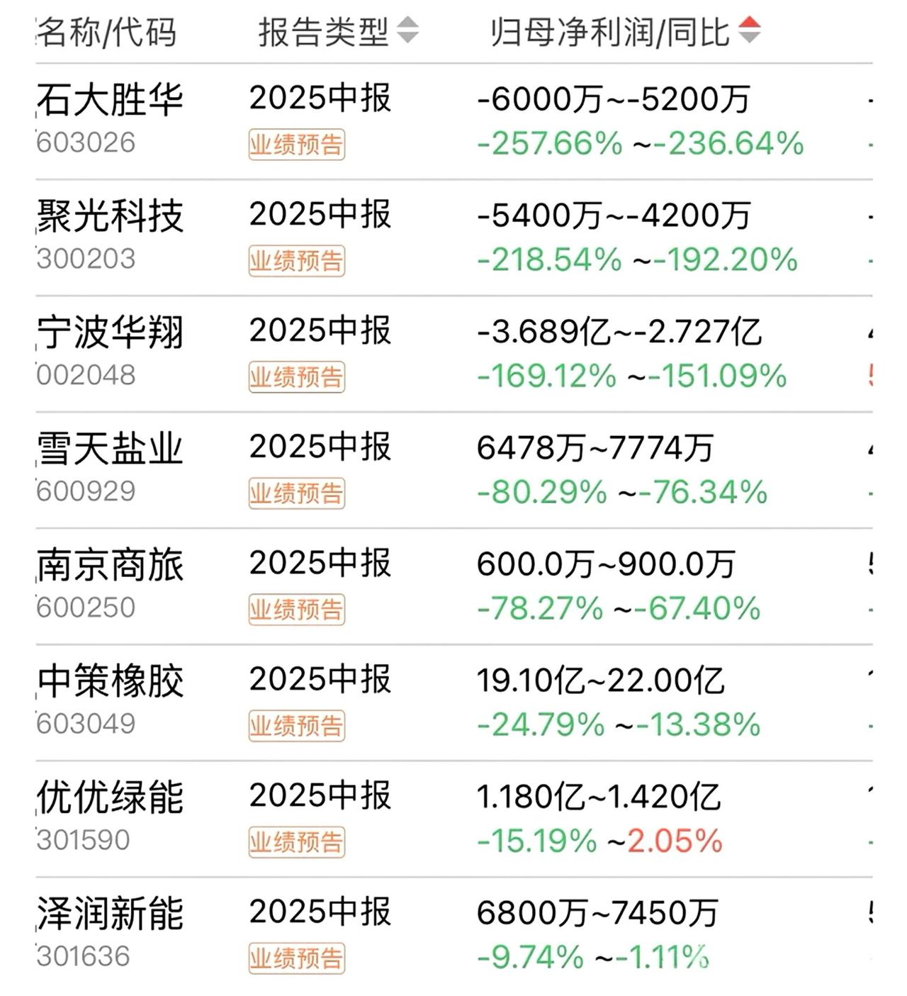 半年成绩单来了!9家企业利润翻倍,能源医药成大赢家。 7月上市公司中考放榜!今年的成绩单可谓冰火两重天:9家业绩翻倍增长,3家巨亏过亿,最高亏损达2.72亿元!在传统行业艰难转型之际,新能源、医药、芯片赛道杀出多匹黑马。 这些增长王的故事里,藏着产业变革的信号。湖南老牌火电企业华银电力迎来华丽转身:随着风电光伏发电规模扩大,半年净赚超1.8亿,利润增幅达36倍!企业成功搭上能源转型快车,由烧煤大户变身为绿色电力供应商。 药企同样风头正劲。翰宇药业凭借多肽药物研发优势,糖尿病等产品需求爆发,净利猛增14倍突破1.4亿。同样受益于医药研发代工的圣诺生物,利润增长超2.5倍,显示创新药产业链持续升温。 在产业升级浪潮中,重庆国资房企渝开发逆势突围。通过商品房与资产运营双轮驱动,净利润暴增6倍至1.75亿以上。而特种钢材龙头广大特材更是交出2亿利润、增长3.6倍的成绩单,高端制造企业显韧性。 不过,市场总不乏失落者。石大胜华亏损超5200万,聚光科技、宁波华翔也在亏损名单中,三家企业亏损总额超4亿。行业洗牌加速,尾部企业面临严峻考验。 半导体设备商长川科技盈利大增67%,物联网芯片企业泰凌微利润翻2.6倍,消费电子龙头立讯精密稳增25%。从电力革新到医药创新,再到芯片国产替代,真正推动业绩增长的,正是这些站上时代浪潮的企业。