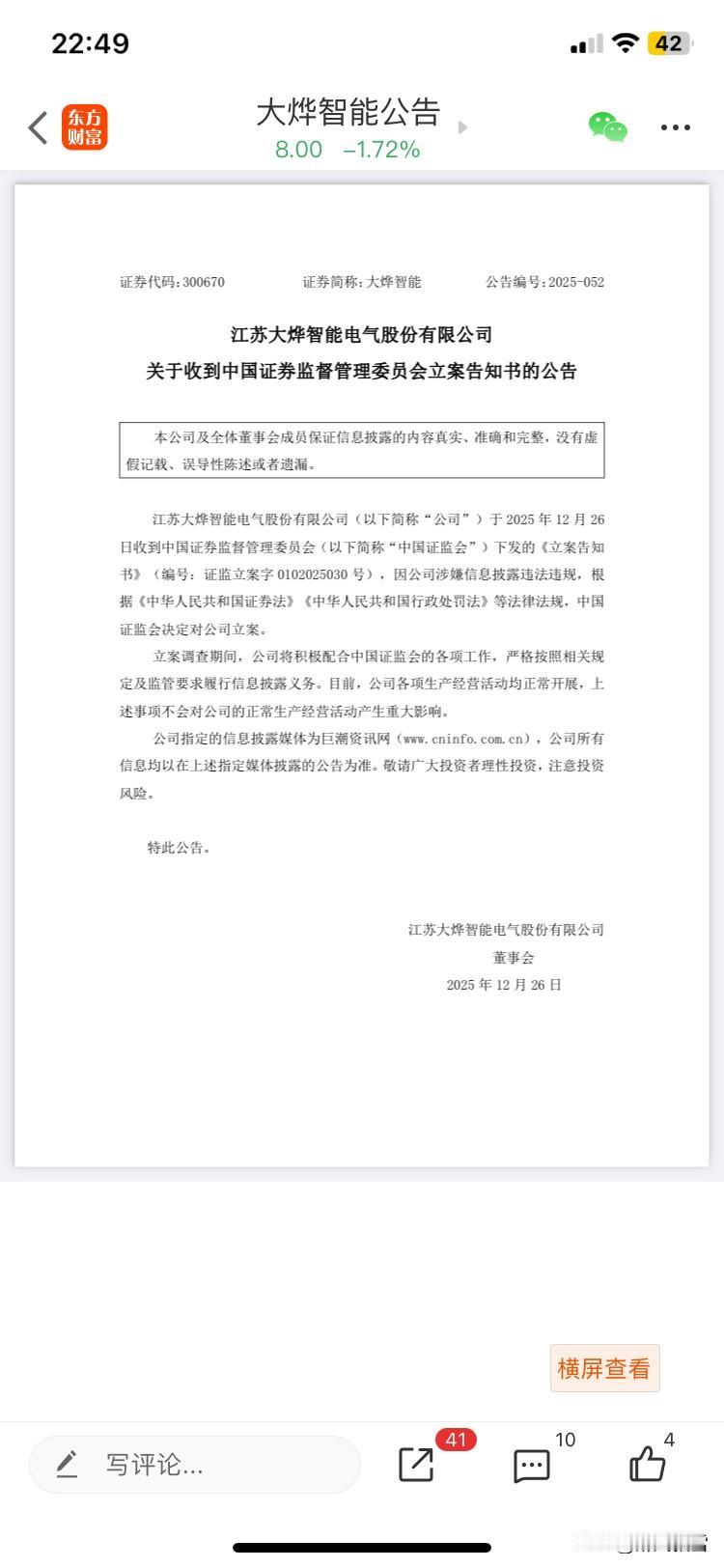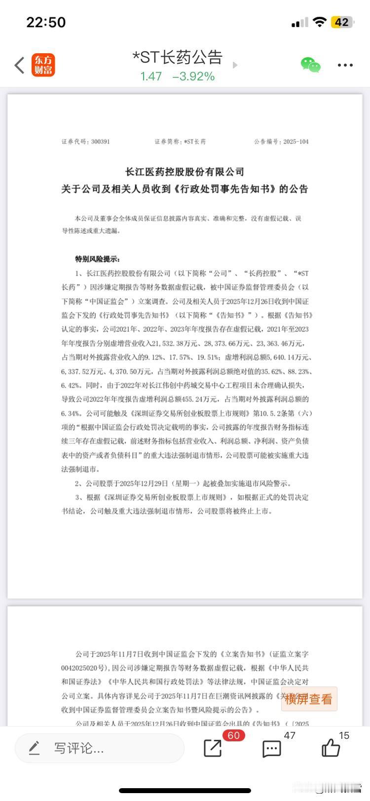 周末五家公司暴雷,其中一家存在退市风险 ST长药、大烨智能、派瑞股份、ST长园、臻镭科牧五家公司因信披问题被证监会立案,其中ST长药涉2021-2023年财务造假,叠加净资产为负,12月29日起叠加退市风险警示,面临重大违法退市可能,风险极高。其余公司仅普通信披违规立案,经营正常,臻镭科技或扰动商业航天板块情绪,其余标的影响偏短期。 被立案个股存在大利空,10-30 %回调幅度!