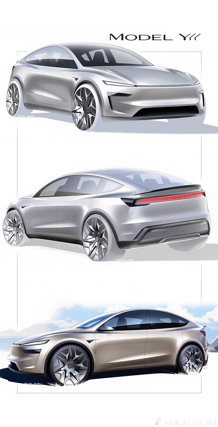 Model Y L的设计手稿我个人觉得YL是比Y好看的,因为屁股拉高了 显得更饱满,鼠标感没有标轴Y那么重了你们觉得呢 下面三张是YP的
