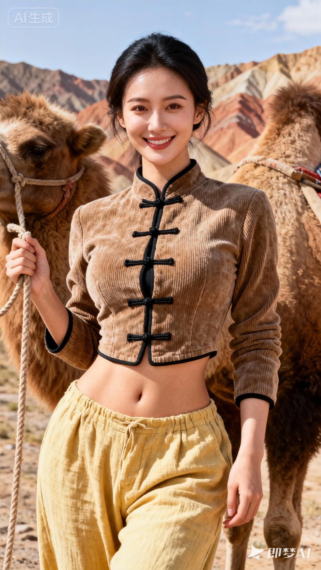 秋日暖阳下,少女轻摇秋千,蓝丝带飘逸,黄裙花影摇曳。