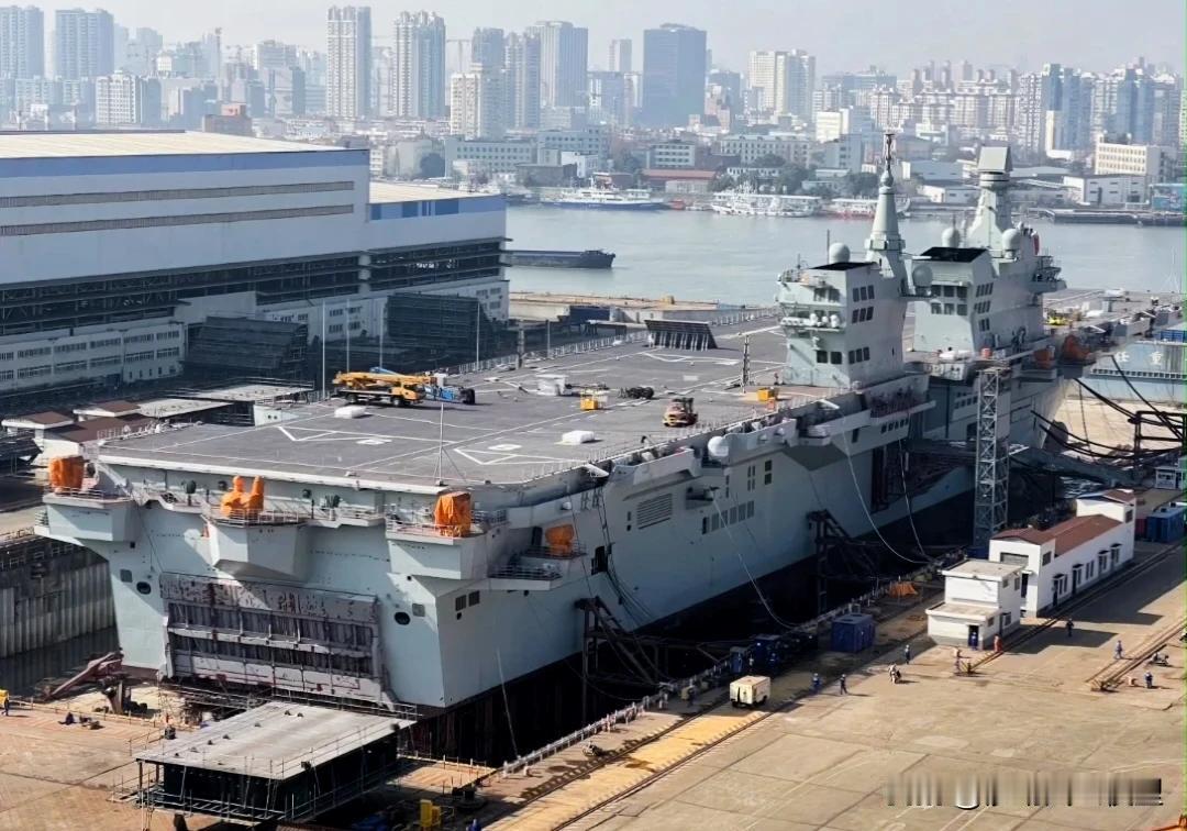 回港后的076后靓照,这角度看上去真帅啊!挡焰板开启状态,眼神好的朋友帮忙看看,有没有拦阻索?是不是该上了?