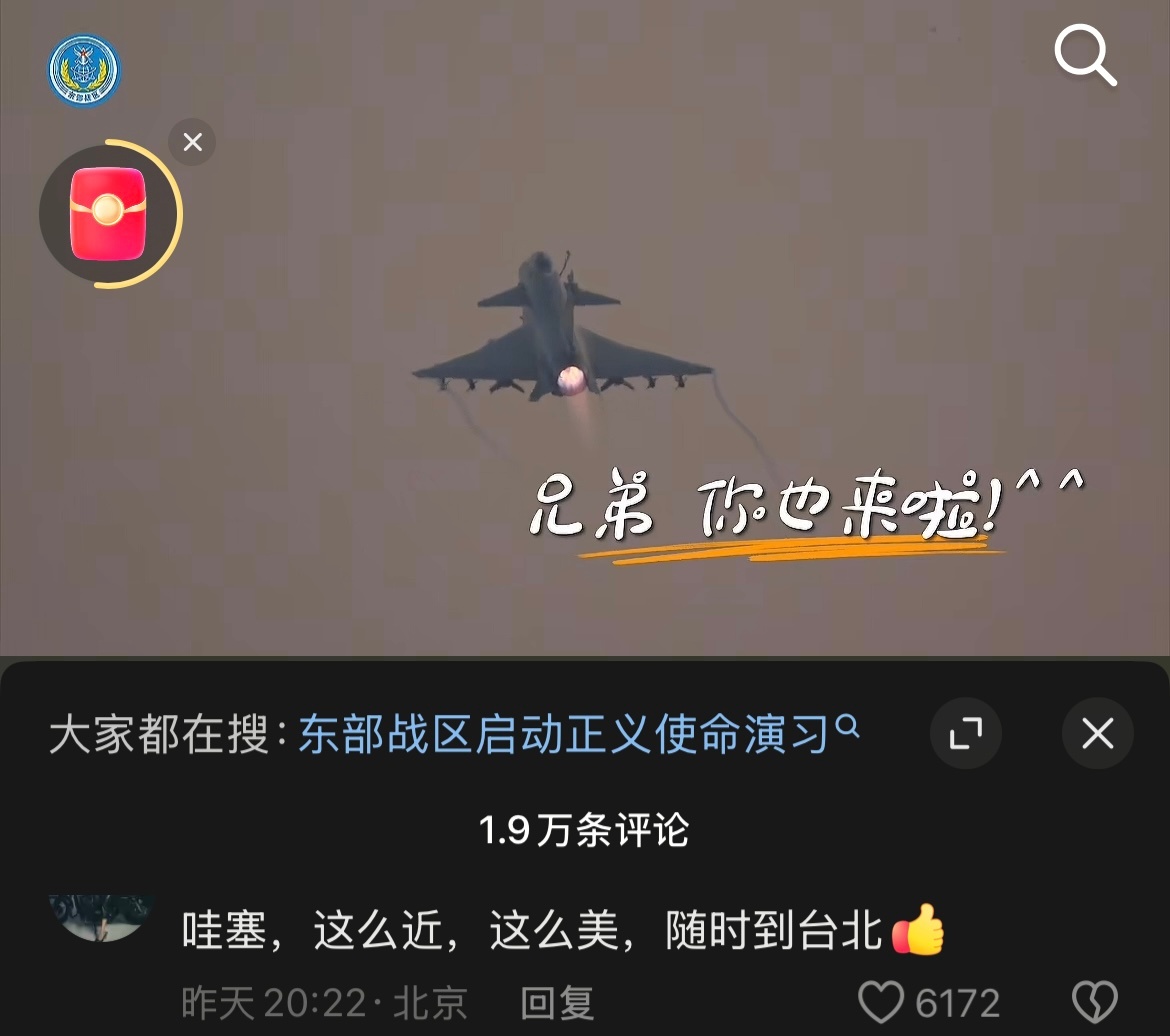 可算是玩坏了!河北文旅标语虽然闻名世界,也被玩出花样了,但是被国家征用更霸气了“这么近那么美 随时到台北”。刷到台湾网友发布的视频也都很友好,感叹祖国飞机威武霸气!台北的朋友们今年回家一起过年吗🧨美美桑内🎵