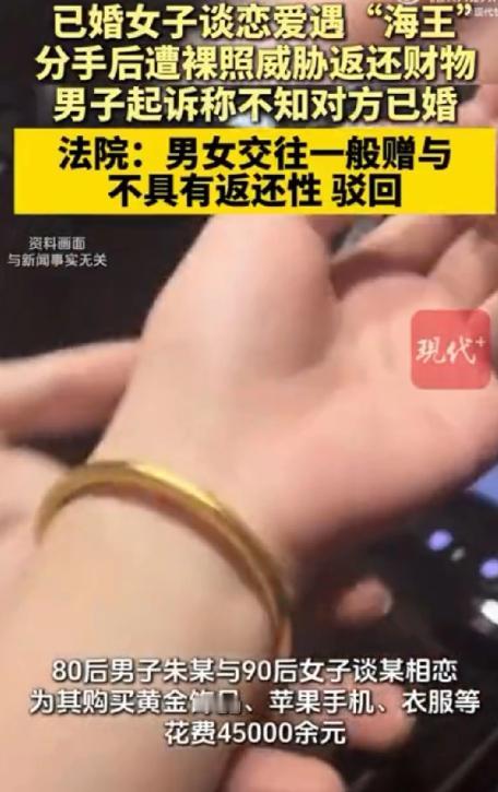 “想白嫖想疯了吧!”广东中山,男子疯狂追求已婚女子,不仅为其购买黄金首饰和苹果手机,还经常给她转账520、购买衣服,终于博得女子的欢心。相恋一段时间后,男子吃干抹净就想拍屁股走人,拿出女子的裸照威胁,要求女子返还恋爱期间的花销45000余元。遭到拒绝后,男子把女子告上法庭,声称他这是以结婚为目的的赠与,女子恶意隐瞒已婚事实,必须返还这些财物。法院审理发现,男子以同样的手段,同时和多名女性保持恋爱关系,最终作出的判决大快人心。 事情的男主角朱某,三十多岁,从事个体生意,收入尚可,外表干净体面,言谈间颇有分寸。 在朋友眼中,他是“情商很高、会哄人”的那一类人。也正是这份“体贴”,让他在感情场上屡屡得手。 2022年初,朱某通过社交平台认识了谭某。谭某已婚,有家庭、有孩子,日常生活平淡而琐碎。 朱某起初并未表露任何越界的意图,只是频繁关心、嘘寒问暖,时不时送上小礼物。节日里一句“记得吃饭”,深夜一句“我陪你聊会儿”,让谭某逐渐卸下防备。 很快,朱某开始加大“投入”。 他先后为谭某购买了黄金首饰、苹果手机,还时常以“520”“1314”等带有明显情感暗示的金额转账。衣服、鞋子、化妆品,只要谭某随口提一句,朱某很快就会安排到位。 朱某在聊天中反复强调:“我是真心的”“我是奔着结婚去的”,甚至多次暗示愿意为她“解决现实问题”。 在长期情绪依赖和物质攻势下,谭某最终越过了底线,与朱某发展成地下恋情。她以为自己遇到了“懂她的人”,却没想到,真正的算计,才刚刚开始。 恋爱一段时间后,朱某的态度突然发生变化。原本的嘘寒问暖逐渐减少,消息回复变得敷衍。直到有一天,朱某直接摊牌,提出分手。 更让谭某震惊的是,朱某随后拿出几张她曾私下发送的隐私照片,明确表示:如果不把恋爱期间的花销——共计45000余元退还,就“让她的家庭和单位都知道这些事”。 谭某当场崩溃。她拒绝还钱,也拒绝接受威胁,并明确表示:这些钱和物品,都是朱某自愿赠与,从未有过借款或附加条件。双方多次协商无果,朱某索性一纸诉状,把谭某告上了法庭。 在起诉书中,朱某声称: 自己所有的转账和礼物,均属于“以结婚为目的的附条件赠与”,而谭某在明知自己已婚的情况下,仍与其交往,属于恶意隐瞒重要事实,应依法返还全部财物。 案件进入审理阶段后,事情却出现了戏剧性的反转。 法院在调查中发现,朱某提交的聊天记录存在明显删减痕迹,且多笔转账并未注明用途。同时,法官在梳理证据时,意外发现朱某在同一时间段内,竟然还与另外多名女性保持“恋爱关系”。 进一步调查显示,朱某几乎使用同一套话术:先是频繁关心、制造情绪依赖;随后通过小额转账、节日礼物逐步升级投入。 再以“结婚”为幌子获取信任;一旦关系出现变化,便以隐私要挟,索要钱财。 甚至在另一起未立案的纠纷中,也有女性反映遭遇过类似威胁。 庭审现场,朱某的说法逐渐站不住脚。法官当庭指出: 其行为不符合“以结婚为目的的赠与”法律特征,反而更接近于以恋爱为名实施的情感操控与财物纠纷。 最终,法院作出判决: 朱某主张的返还请求缺乏事实和法律依据,不予支持; 其利用他人隐私照片进行威胁的行为,已涉嫌违法,相关线索将移交有关部门处理。 判决结果一出,旁听席一片哗然。 有人为谭某庆幸躲过一劫,也有人感叹:感情一旦掺杂算计,往往伤人更深。 更有网友直言:“这哪里是恋爱失败?分明是翻车的情感生意。”