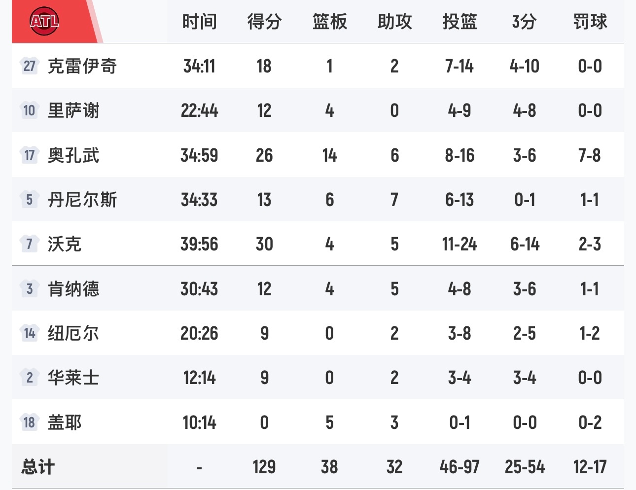狂飙25个三分球,无吹老鹰129-140负于雷霆,亚历山大39分。