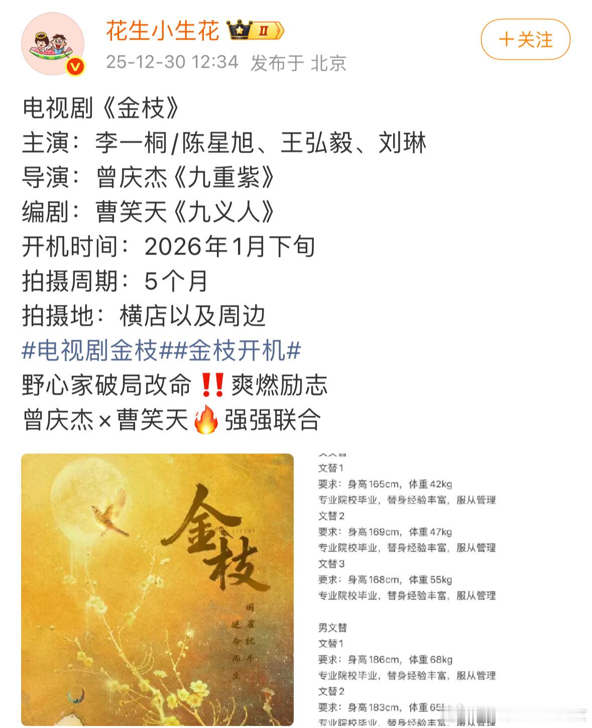 金枝班底,平番,从定演员开始,就不是大女主。最新的故事简介来看,男女主故事线已经配平了 。