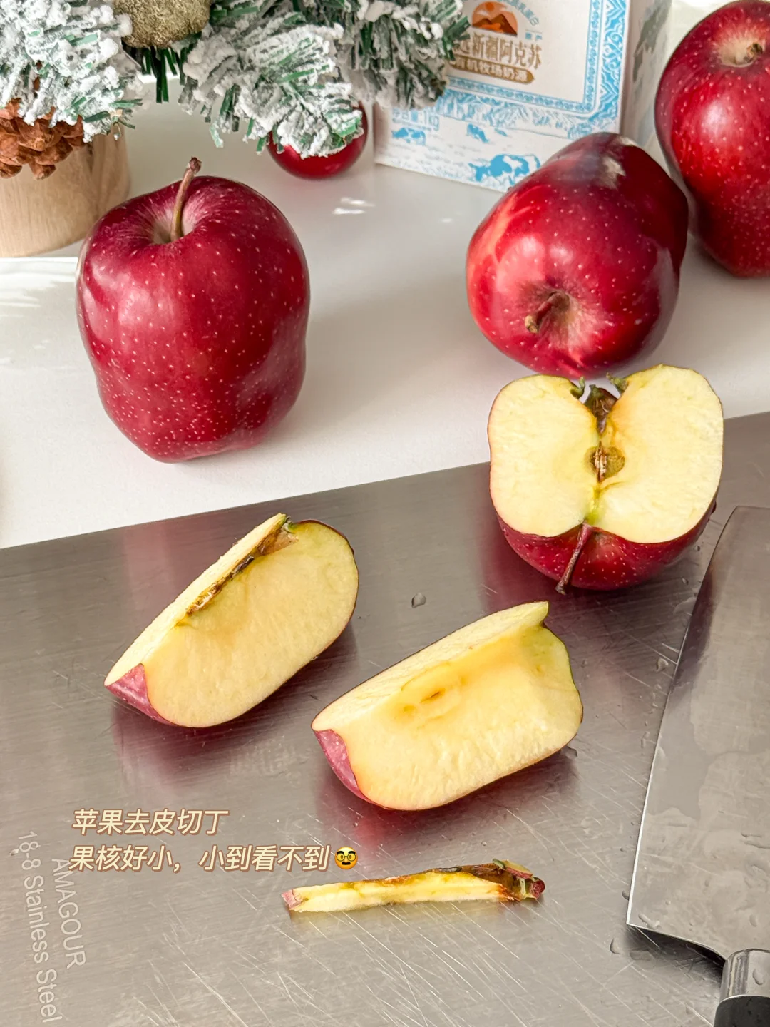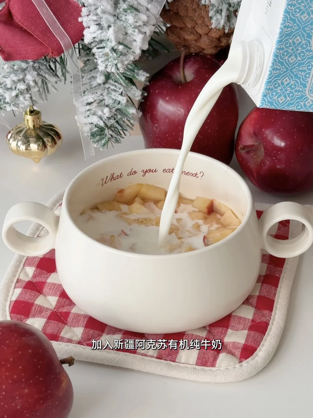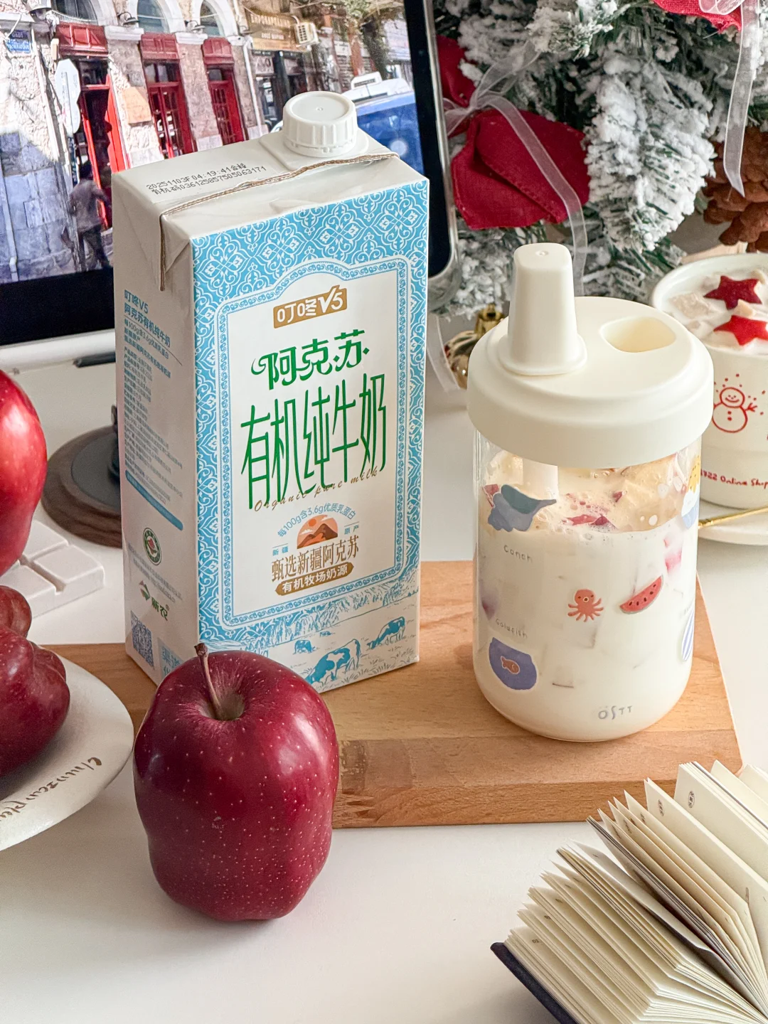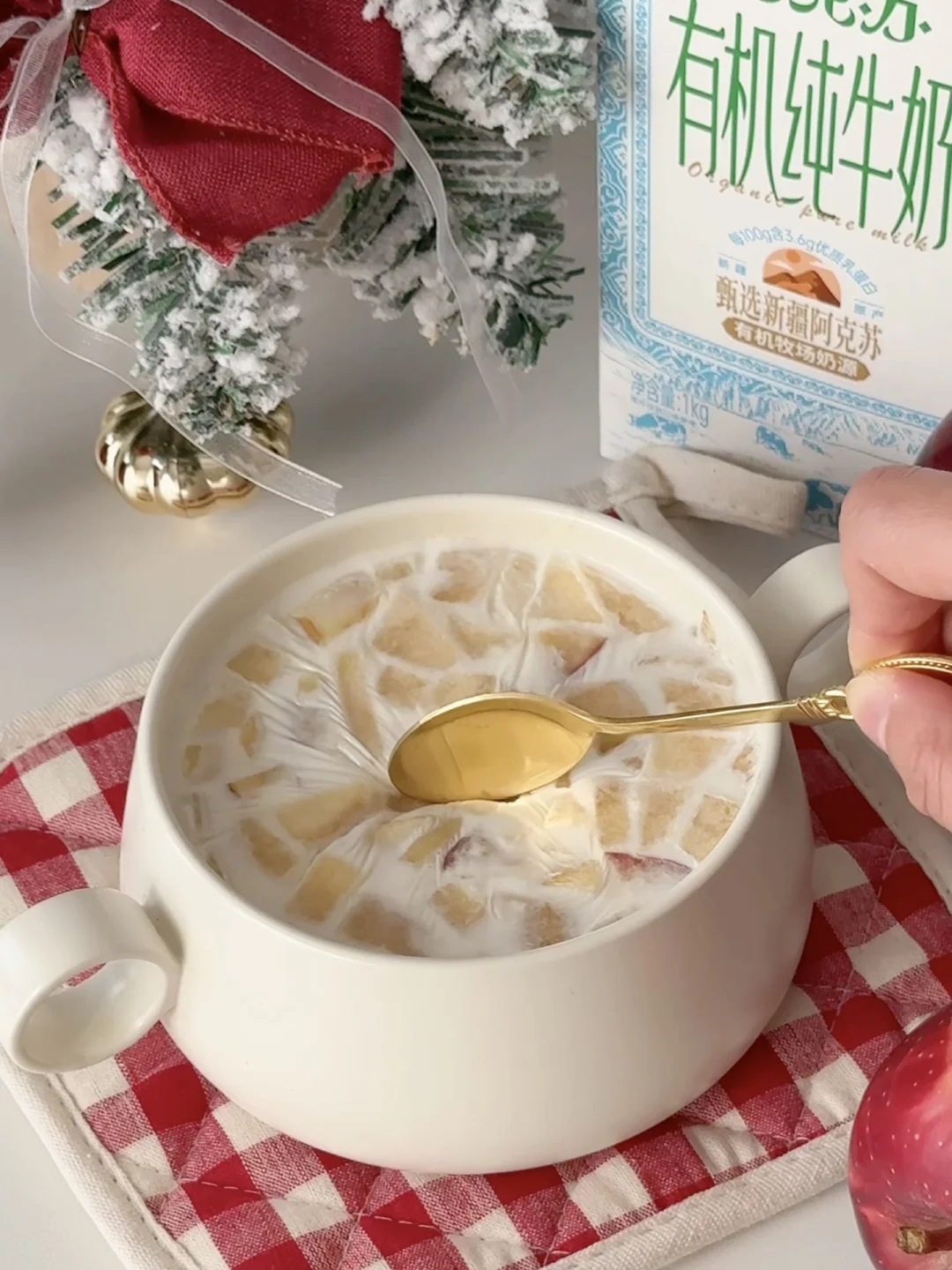 看来这俩真不是随便凑的,花牛苹果的绵密能中和牛奶的醇厚,喝着一点不腻,阿克苏牛奶的清甜又能衬出苹果的果香,加热后味道互相渗透,入口超乎意料的香甜😍后来试过换其他脆苹果或普通牛奶,要么吸味不够,要么奶香盖过果香,出不来这种惊艳口感!