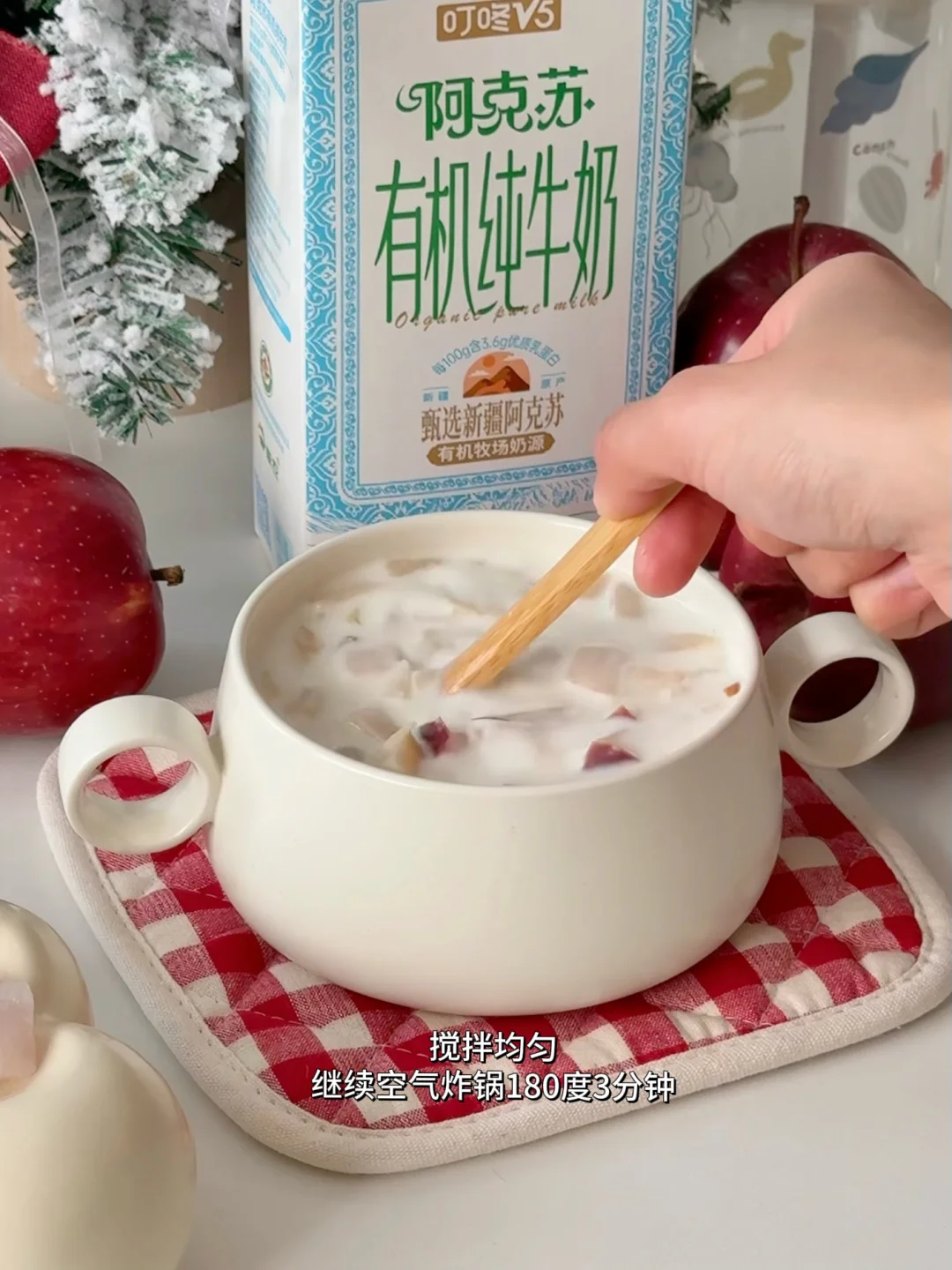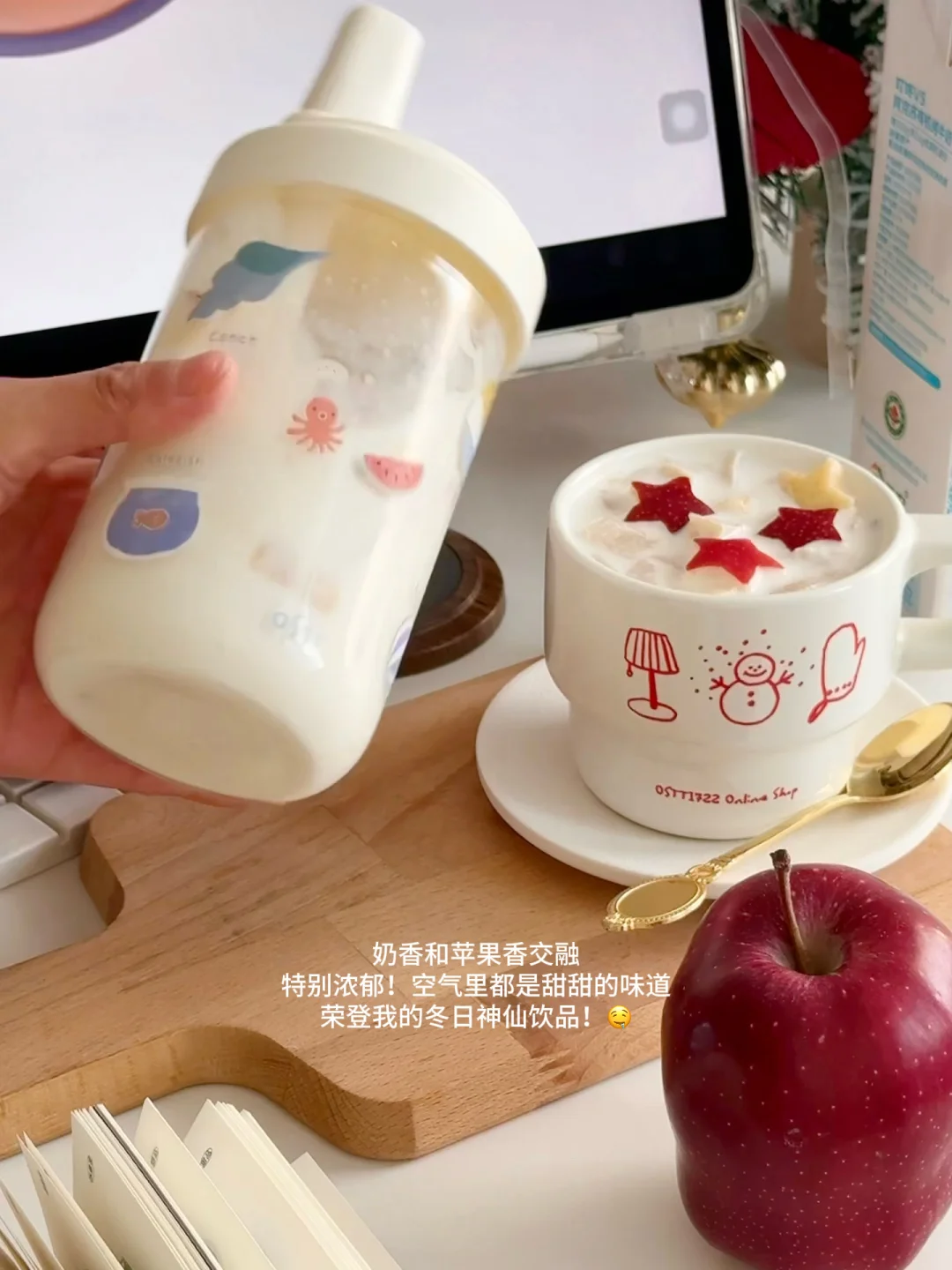奶香味很足带着淡淡清甜,丝滑醇厚,加热后也毫无腥味。不会像普通牛奶那样抢味,反而能稳稳托住苹果的甜香,奶香果香交织,层次超丰富。