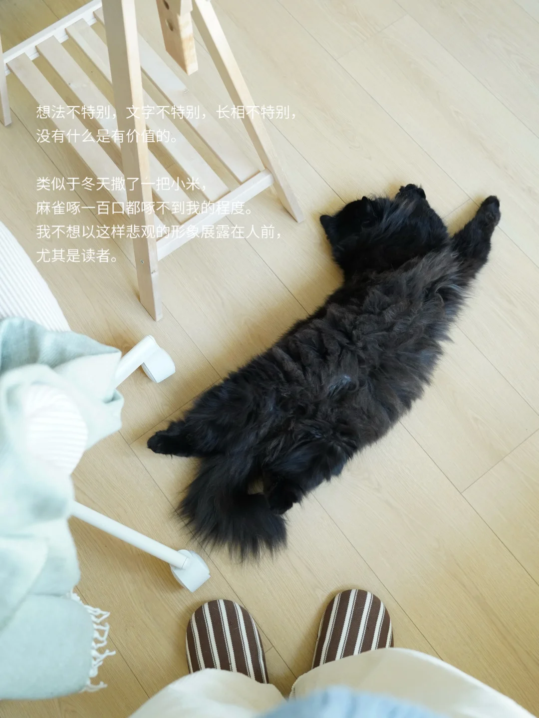 想法不特别,文字不特别,长相不特别,没有什么是有价值的。类似于冬天撒了一把小米,麻雀啄一百口都啄不到我的程度。我不想以这样悲观的形象展露在人前,尤其是读者。