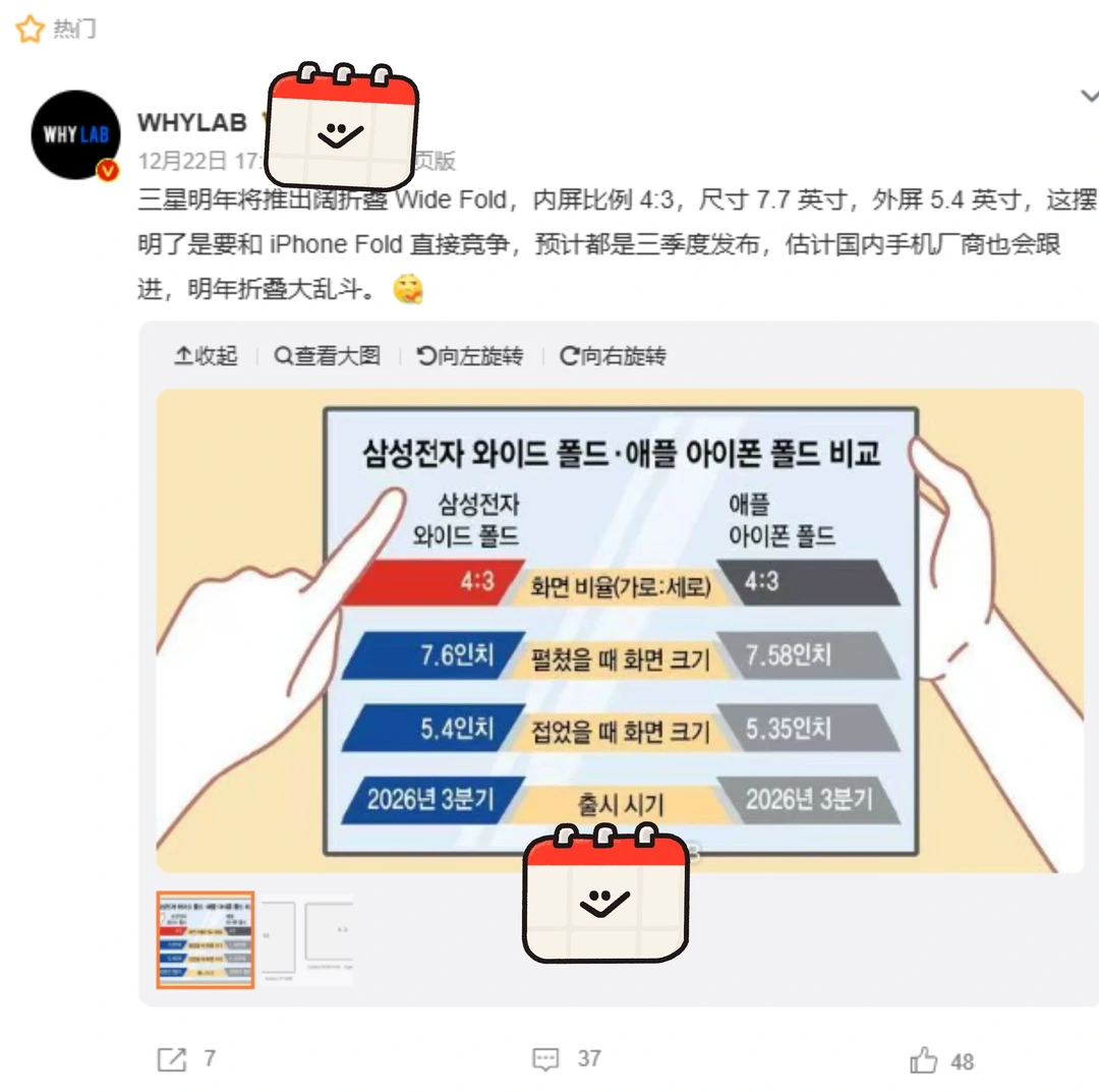 ✅ 苹果iPhone Fold:年底大概率缺货,但7.76英寸内屏+5.49英寸外屏的“矮胖”设计很有辨识度,靠iOS生态预估能分走不少市场份额;