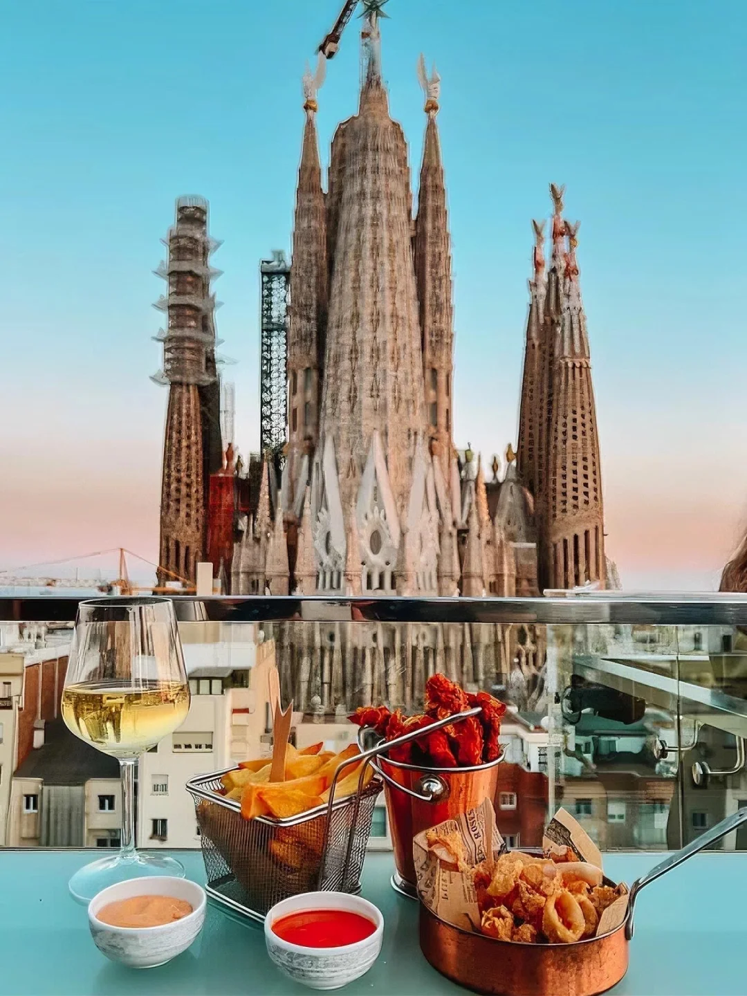 这个bar也是巴塞罗那的老网红了,可以清晰地欣赏圣家堂的宏伟外观,视角非常正。除了圣家堂,还可以俯瞰到巴塞罗那的街道、山丘和远处的海滨。这里尤其适合在黄昏时分来体验,景色会更美