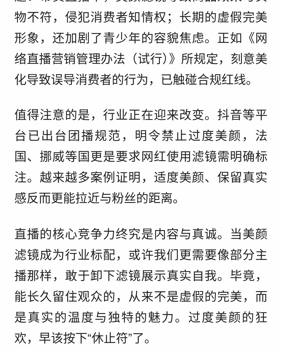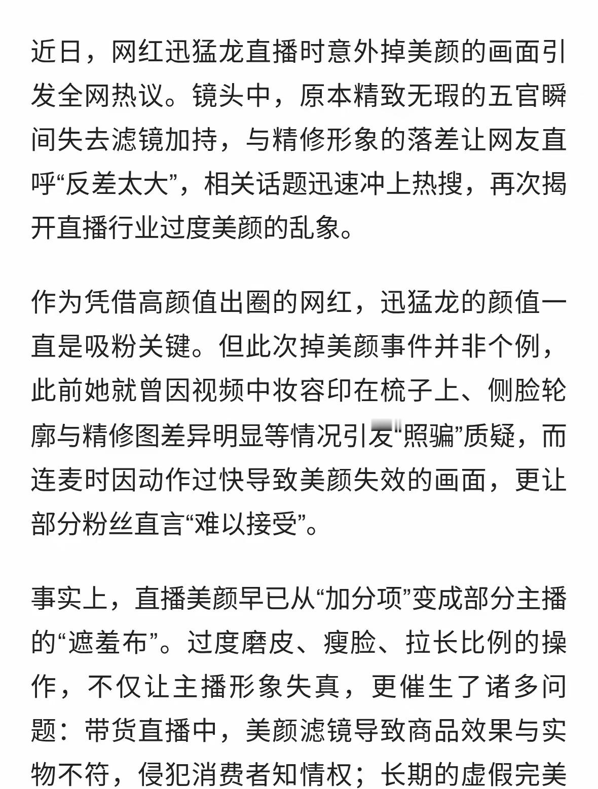 过度美颜该按下“休止符”了迅猛龙直播掉美颜