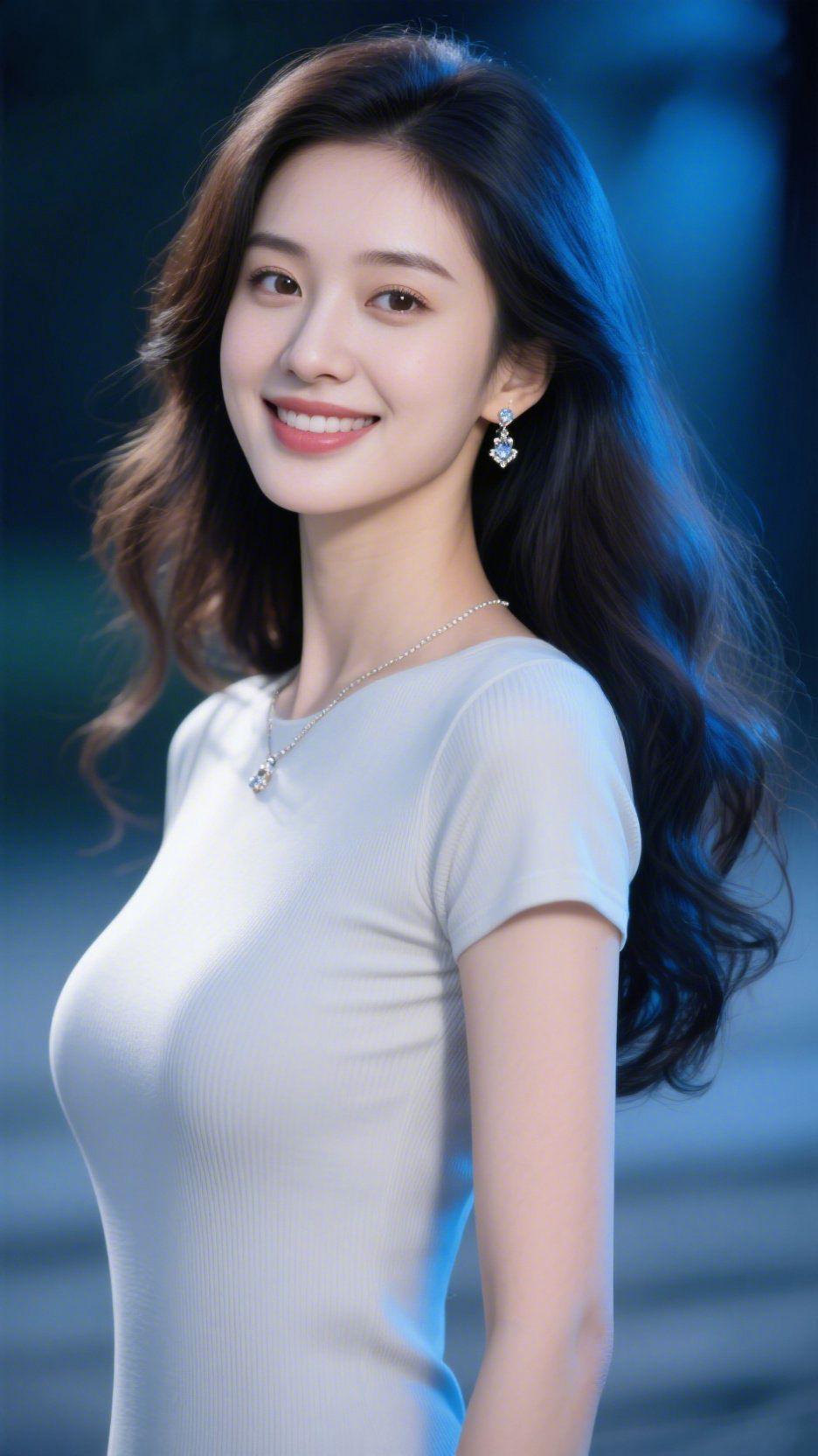 夜色温柔映笑颜 夜色晕开一片清浅的蓝,朦胧的光影像揉碎的星河,轻轻覆在周身。她身着浅白色针织短袖,细腻的纹理衬得气质愈发温婉,颈间的银链如月光般轻绕,耳坠的碎钻似星子闪烁,添了几分灵动的精致。 卷曲的长发在夜色里漾着柔和的弧度,她回眸浅笑时,唇角的笑意像拂过花丛的晚风,眼眸里盛着澄澈的光亮,将夜色的温柔都揉进了这一帧画面。无需繁复的装饰,这份自然的美好便像一缕清风,拂过心头时,只觉满心舒畅。 原来美好从不是刻意的装扮,而是夜色里舒展的笑颜,是眉眼间藏不住的温柔,是平凡瞬间里,一眼就能抓住的心动与暖意。 夜色氛围感 温柔笑颜瞬间