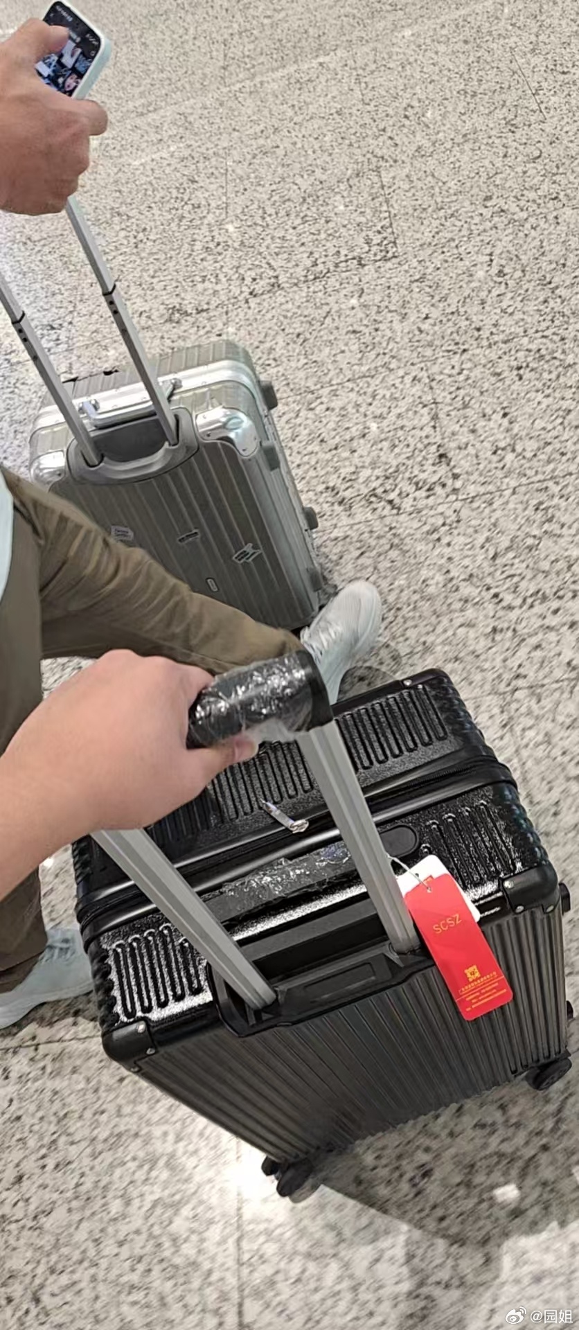 公司小伙伴出差,落地发现旅行箱被托运坏了,就去找机场,结果换回来一个新箱子,他说