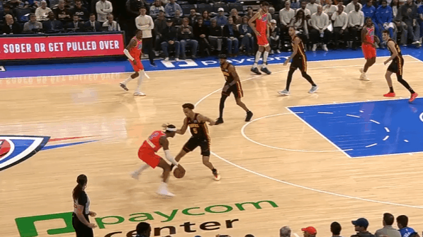 逐帧拆解:亚历山大技术细节解析,高效39分率队取胜图1雷霆、切特常用的早攻小配合,“拖车跟进”后队友设置的“Flare Screen”获得三分出手机会,这个回合里萨谢观察到了掩护墙并迅速挤过破坏了雷霆战术发起。SGA立即启动单打硬解,左路突破直杀篮下没能摆脱戴森,行进间一次对抗后再主动寻求二次对抗,二次对抗接触到的瞬间立即使用背转身抢出半个身位,迎着协防强行上篮终结打进。慢动作细节呈现:图2。图3侧身等切特落位后转髋衔接“坠步”启动左路突破,行进间刺探急停的同时支肘对抗撞开里萨谢,立即衔接“脚步重置”后的中投。图4抓早攻启动突破行进间胯下变到左路,见沃克假刷卡转背身观察防守,背身一次对抗观察防守人反应,二次对抗迅速衔接背转身,摆脱出半个身位后出手滞空后仰中投。慢动作细节呈现:图5。图6混乱局面下接球见纽维尔从右侧扑防,立即突左路长驱直入双手隔扣前来协防的古耶。图7快攻接球突破直杀篮下,行进间炸球后大回环合球的同时配合欧洲步,接近篮下后立即起跳终结,辅助手格挡左手上篮打进。慢动作细节呈现:图8。NBA