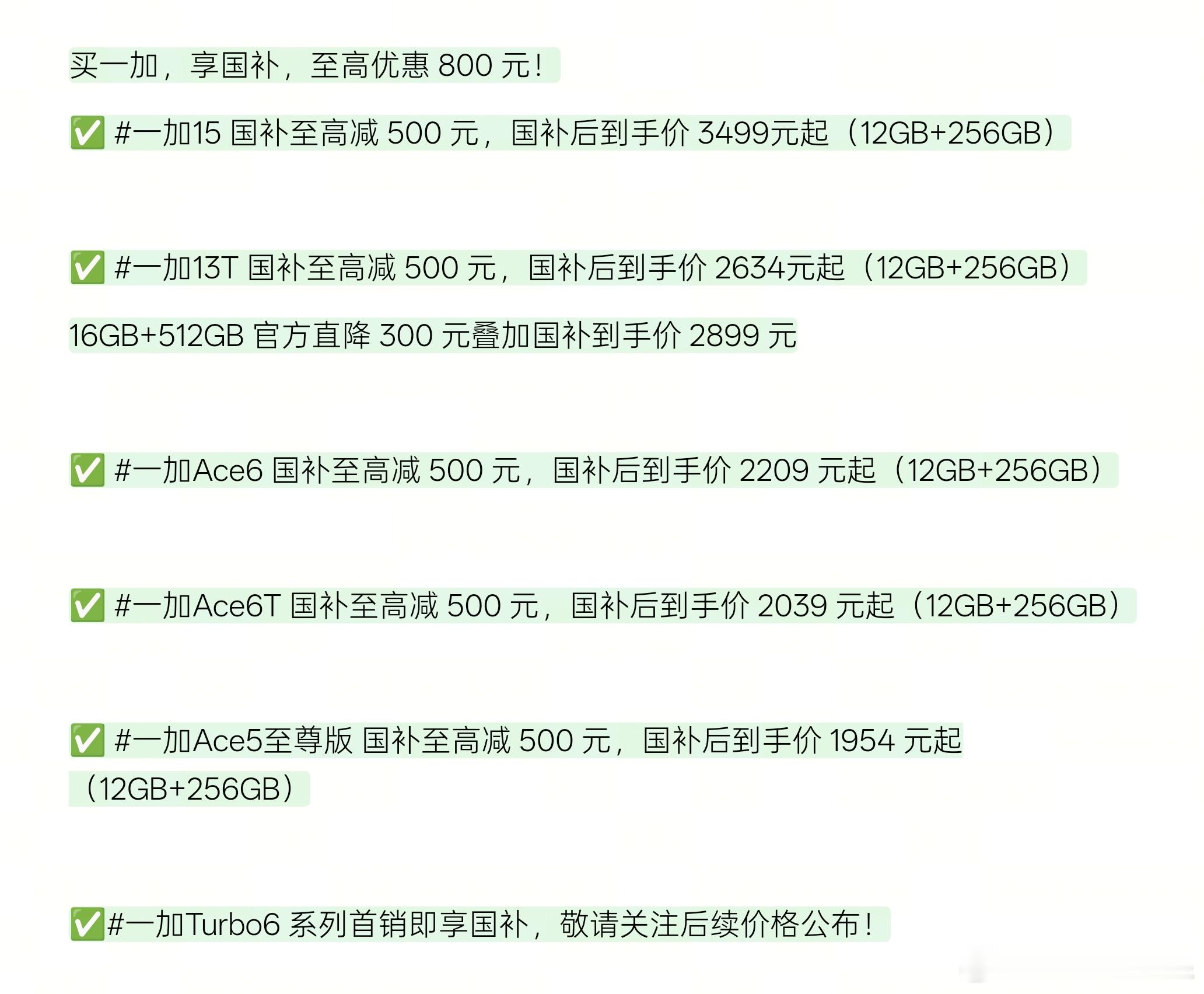 2026年国补目录一加国补来了!!!涵盖全部机型,香迷糊了,而且Turbo6系列发布即享国补