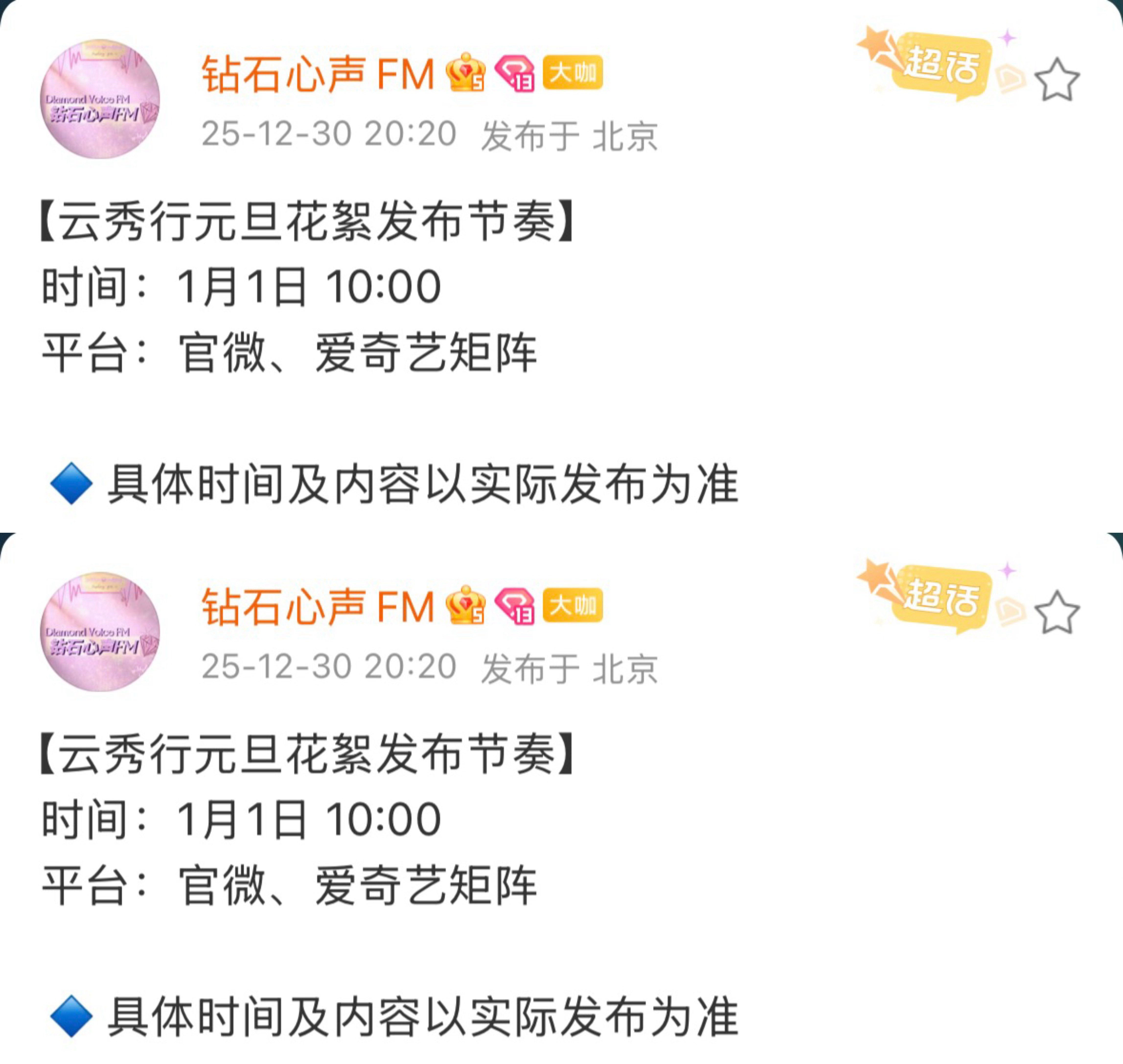 云秀行元旦花絮发布节奏邓为云秀行元旦即将发布新鲜花絮,又可以看见新的郑适/楼启炎