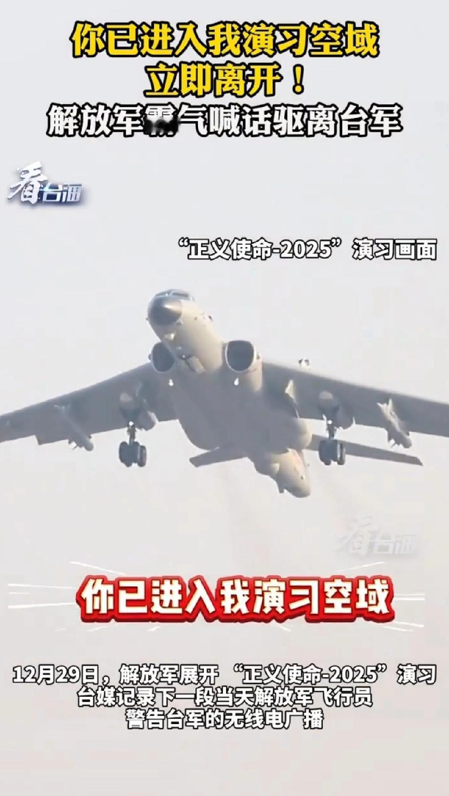 解放军霸气喊话驱离台军,原声曝光:这声警告,藏着14亿人的底气! “你已进入我演习空域,立即离开!” 当解放军东部战区的硬核喊话原声传遍网络,无数网友瞬间热血沸腾,循环播放几十遍仍觉得意犹未尽——这不是影视剧中的台词,而是12月29日“正义使命-2025”军演现场的真实录音,一字一句都透着不容挑衅的主权底气。 谁能想到,此前还嚣张叫嚣“敢进12海里就开第一枪”的台军,面对这声警告直接怂了:左营基地军舰紧急出港疏泊,坦克部队慌忙转移,所谓的“反击”不过是自欺欺人的表演。更讽刺的是,台军曾试图用火控雷达照射解放军舰艇,却被052D驱逐舰当场警告“停止敌对挑衅”,最终只能灰溜溜收敛动作。这哪里是对峙,分明是实力悬殊的“降维震慑”。 这声霸气喊话的背后,是硬实力的绝对支撑。当天130架次军机、14艘舰艇从七大方向抵近台岛,演习区域直插台岛12海里内,屏东点位距台岛仅4.7海里,相当于“贴脸”施压。从雷达锁定到无线电警告,从多兵种协同封控到联合打击演练,整个流程行云流水,彰显的是解放军对台海局势的绝对掌控力,更是捍卫国家主权的坚定决心。 或许有人会问,为何要如此“强势”?答案很简单:台湾属于中国是不容置疑的事实,《开罗宣言》《波茨坦公告》等国际文件早已明确这一法理依据,联大第2758号决议更是从政治、法律和程序上彻底解决了中国在联合国的代表权问题,任何企图分裂自己国家的行为,都注定被钉在历史的耻辱柱上。民进党当局勾连外部势力“倚外谋独”,不过是螳臂当车,最终只会自取其辱。 网友的评论戳中人心:“不是我们好战,是主权不容侵犯;不是我们强硬,是底线不能退让。” 这声喊话,喊出的是军人的使命担当,更是14亿中华儿女对国家统一的深切期盼。在维护领土完整这件事上,我们从不打嘴仗,只用实力说话——你敢挑衅,我就敢亮剑;你敢越界,我就敢驱离! 如今,演习仍在继续,解放军用实际行动告诉世界:台海不是想来就来的“后花园”,中国的领土主权神圣不可侵犯。这声霸气警告,既是对“台独”分裂势力的严正震慑,也是对国际社会的明确宣告。你听完这段原声觉得解气吗?对于国家统一,你有哪些心里话想说?来评论区一起为解放军点赞,聊聊你的看法~ 注,取材网络有,如有侵权请联删除