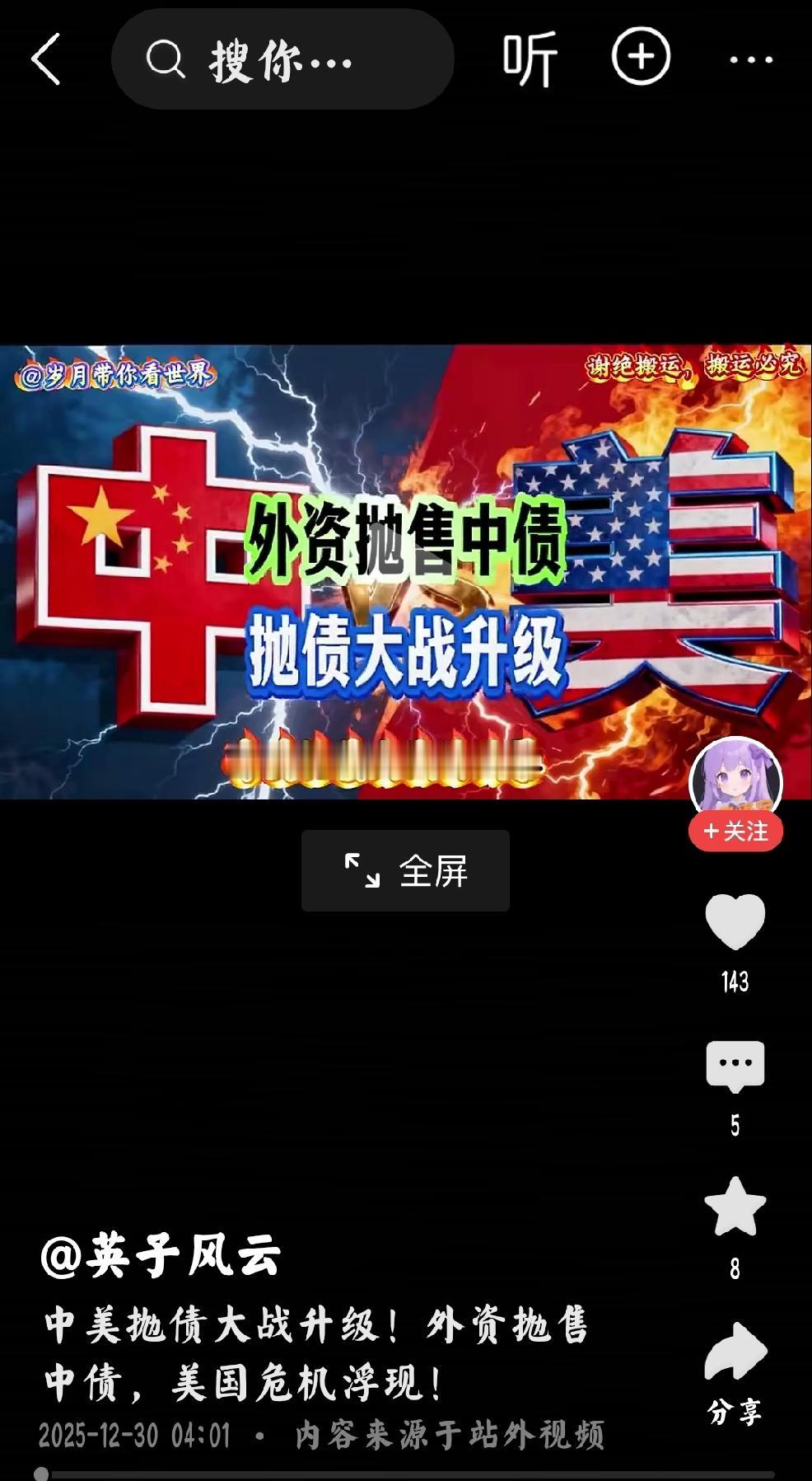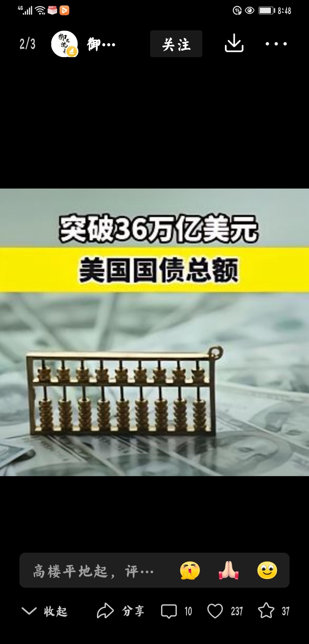 精彩历史时刻:热战没胆,被动财战 个人认为:这是世界力量扭转的历史时段,在未来的世界史,政治史,金融史将会浓墨重彩的记录。 这一刻,普通人过着普通的生活,丝毫没有察觉世界历史正在无声无息的发生着决定性改变。 当前美国没有胆量与中国发生热战。中国发起了金融战手段— 抛售美债— 越精准-有策略-有目的-限范围的引爆美国债务危机,个人认为:美债爆炸范围只限于美-西方国家,美国应战。 中美金融战,具体详情,后续播放。