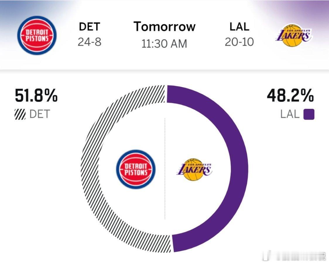 湖人活塞比赛预告!湖人遇到硬茬了!斯图尔特居然是老詹迷弟?明天11点半,常规赛G31,2025年最后一战!湖人主场迎战活塞,ESPN预测湖人胜率48.2%,活塞51.8%!湖人在上一场打国王迎来一场大胜,止住三连败,老詹上一场效率极高砍下24分,并送上四记暴扣!而东契奇状态也有所回暖,这场无疑是给最近风波不停的湖人来了颗定心丸!而活塞这边,上一场打快船因为背靠背体力不支,再加上撞到了个终结者莱昂纳德!全场爆砍55+11+3+2,活塞全员根本毫无招架之力,最终遗憾败北!近5战及总战绩:湖人近5战2胜3负,总战绩20胜10负西部第5活塞近5战3胜2负,总战绩24胜8负东部第1预测首发:活塞-坎宁安,邓罗,奥萨尔,哈里斯,杜伦湖人-东契奇,斯玛特,拉拉维亚,詹姆斯,艾顿双方伤病情况:八村垒(右小腿酸痛)缺席,里夫斯和文森特继续养伤!勒韦尔左膝酸痛,小概率出战。双方球队数据对比湖人进攻效率第7,防守效率第23,罚球率第1,失误15.3第19,真实命中率61.2第2!活塞进攻效率第8,防守效率第2,篮板率第2,前场篮板率第2,罚球率第3,快攻得分第3,二次进攻得分第2,抢断第3,盖帽第1!活塞几乎全面压制湖人啊!双方取胜之钥:湖人明天必须把篮板保护好,可多放活塞非投篮点,进攻要打好,且要控制好失误!活塞明天就正常打,不要犯低级错误!湖人詹姆斯东契奇底特律活塞