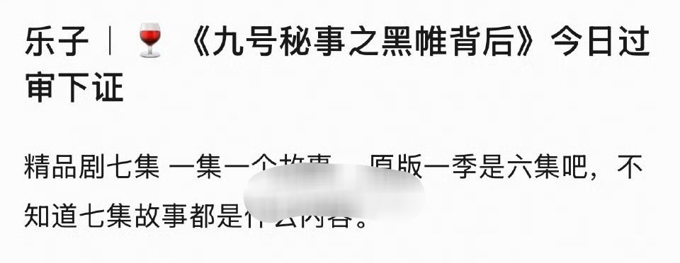 《九号秘事之黑帷幕背后》过审了?好奇成品