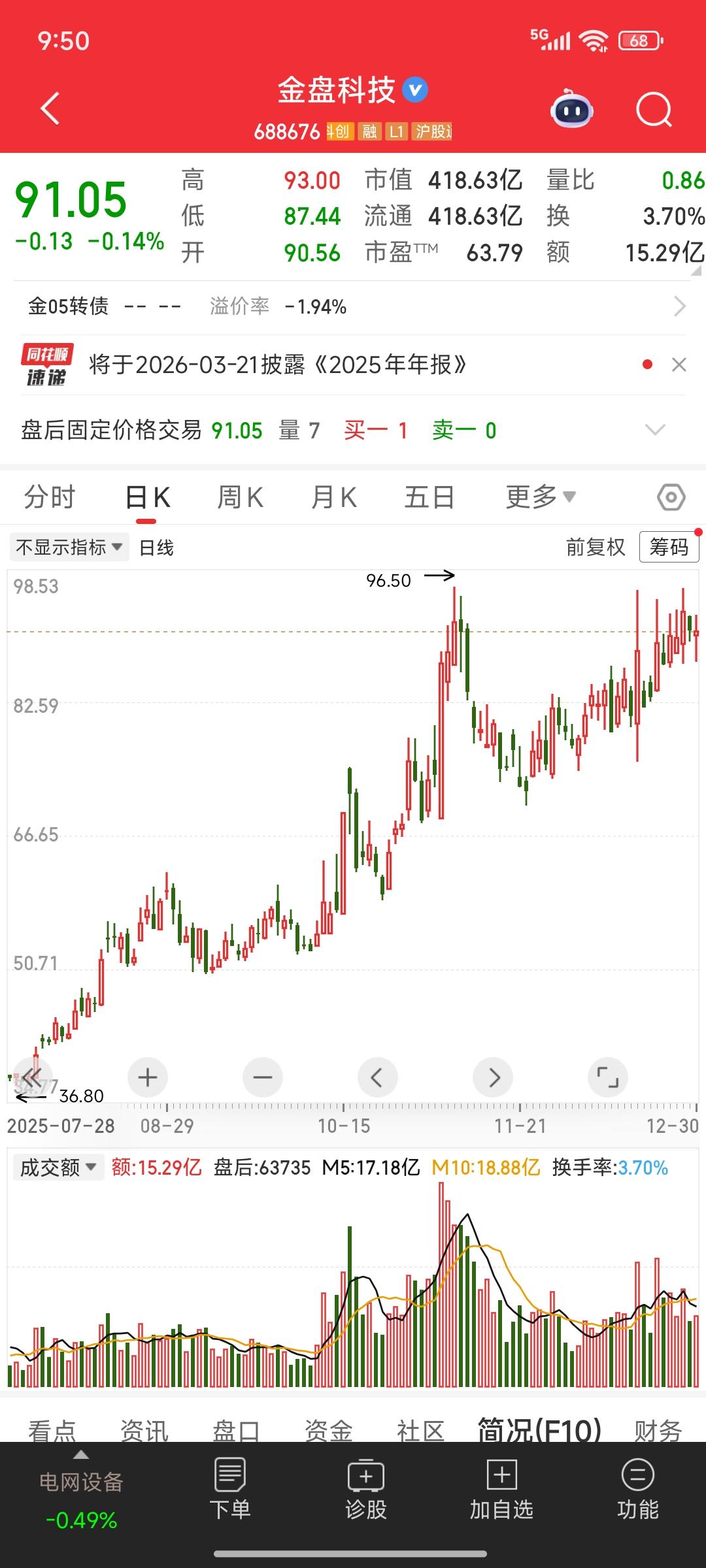 财运来了挡都挡不住呀 1.49万户股东大概率要赚一波了 金盘科技:公司与海外客户签订数据中心项目合同,金额达9899.22万美元。 数据中心电力项目,而且是海外公司 给市场提供了足够的想象力 就看主力想不想拉一波了 看股票的位置处在历史高位 所以有必要提示一下风险 一定要充分了解风险,谨慎考虑参与