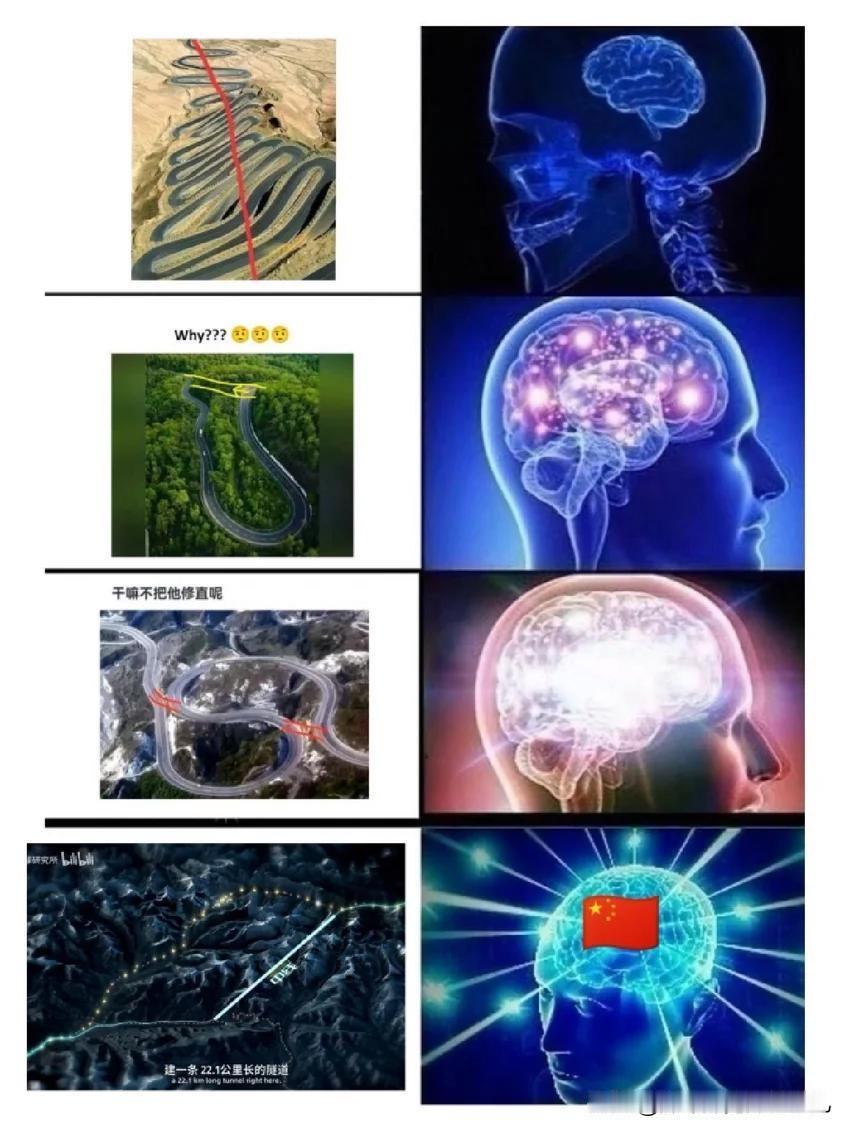 天山胜利隧道,22.1公里打穿天山中线,前几天刚全线通车... 那边有天池和高山草原,连接4国,除开地形地貌劣势,是绝对的中国和中亚沟通的经济要道,但凡平坦一点,海拔低一点,欧亚大陆桥都不会走西伯利亚。 高原冻土隧道气候压强变化大,必须特殊水泥建造,桥墩实时数据监控,就是维护成本高的吓人... 突然发现我们的神话故事里… 不是移山就是填海… 这大概也是自古以来的基操了...