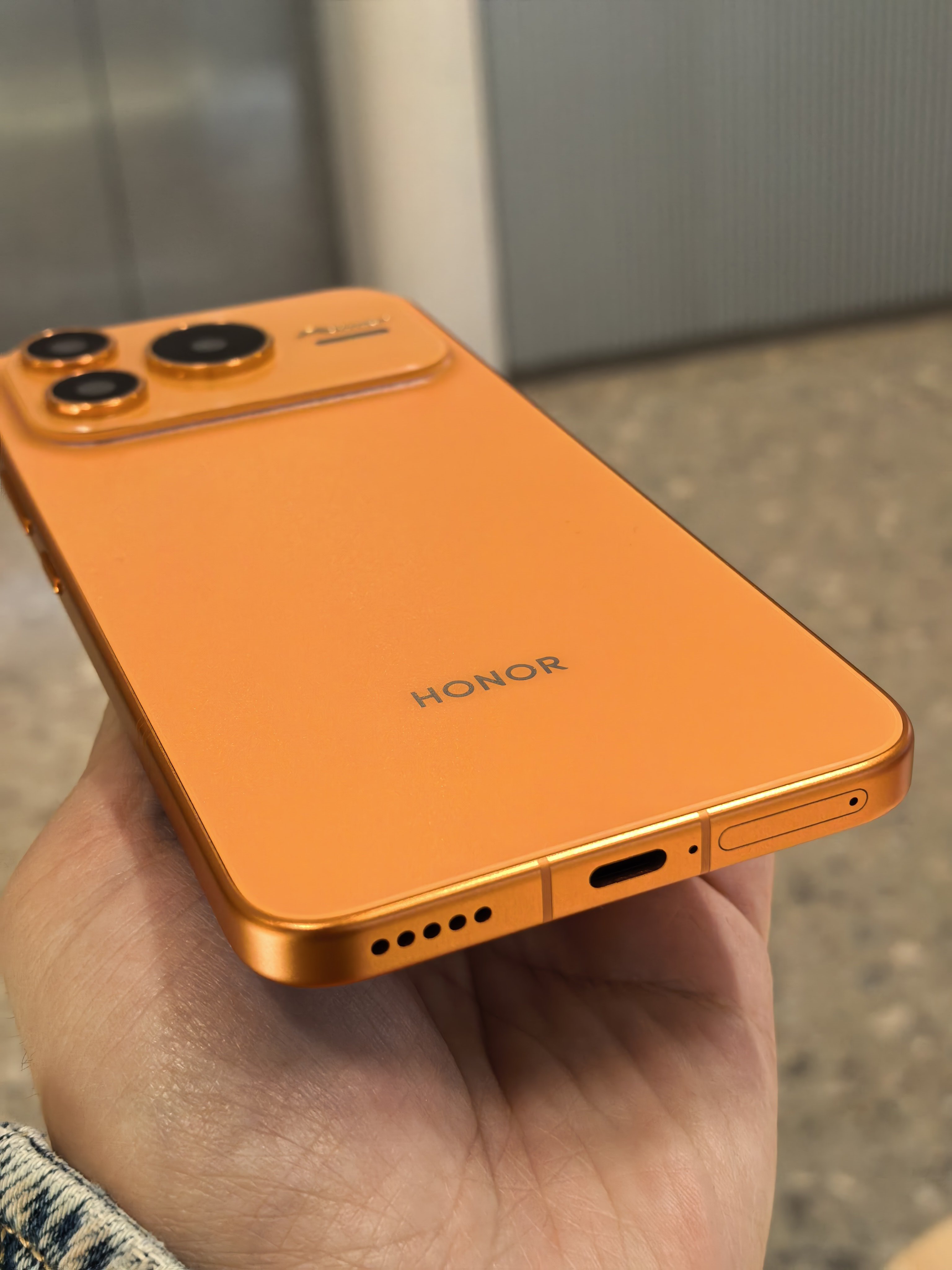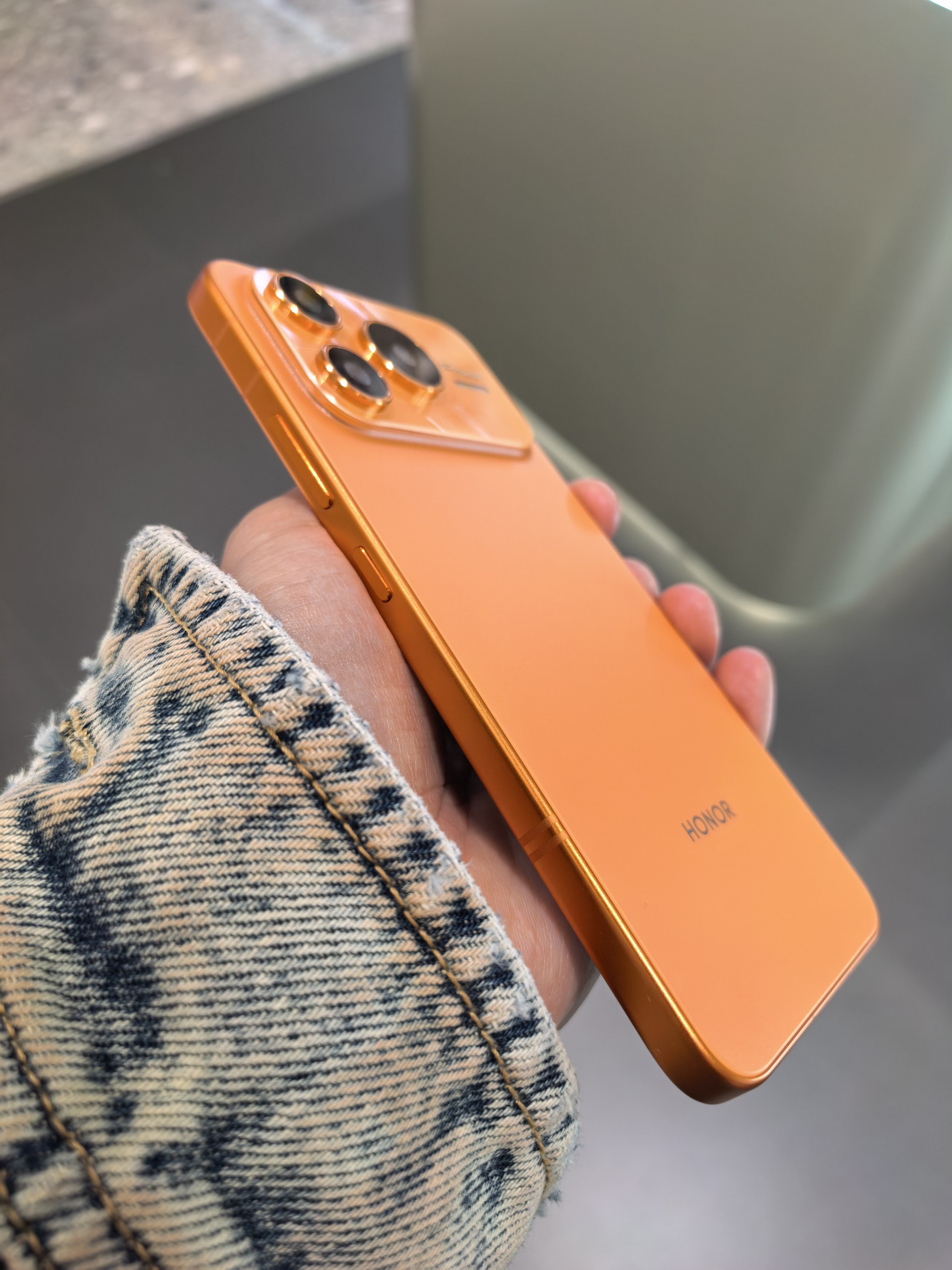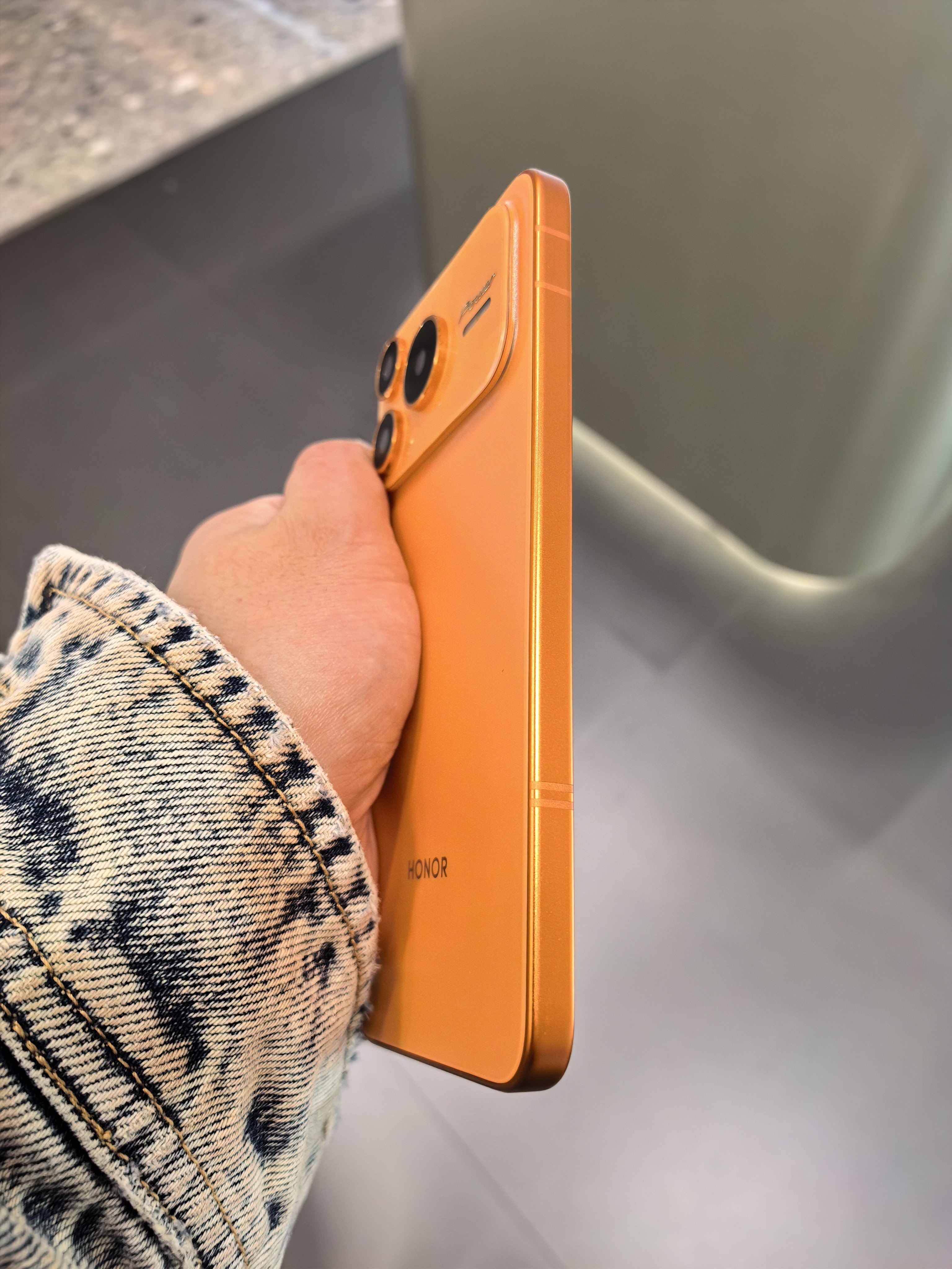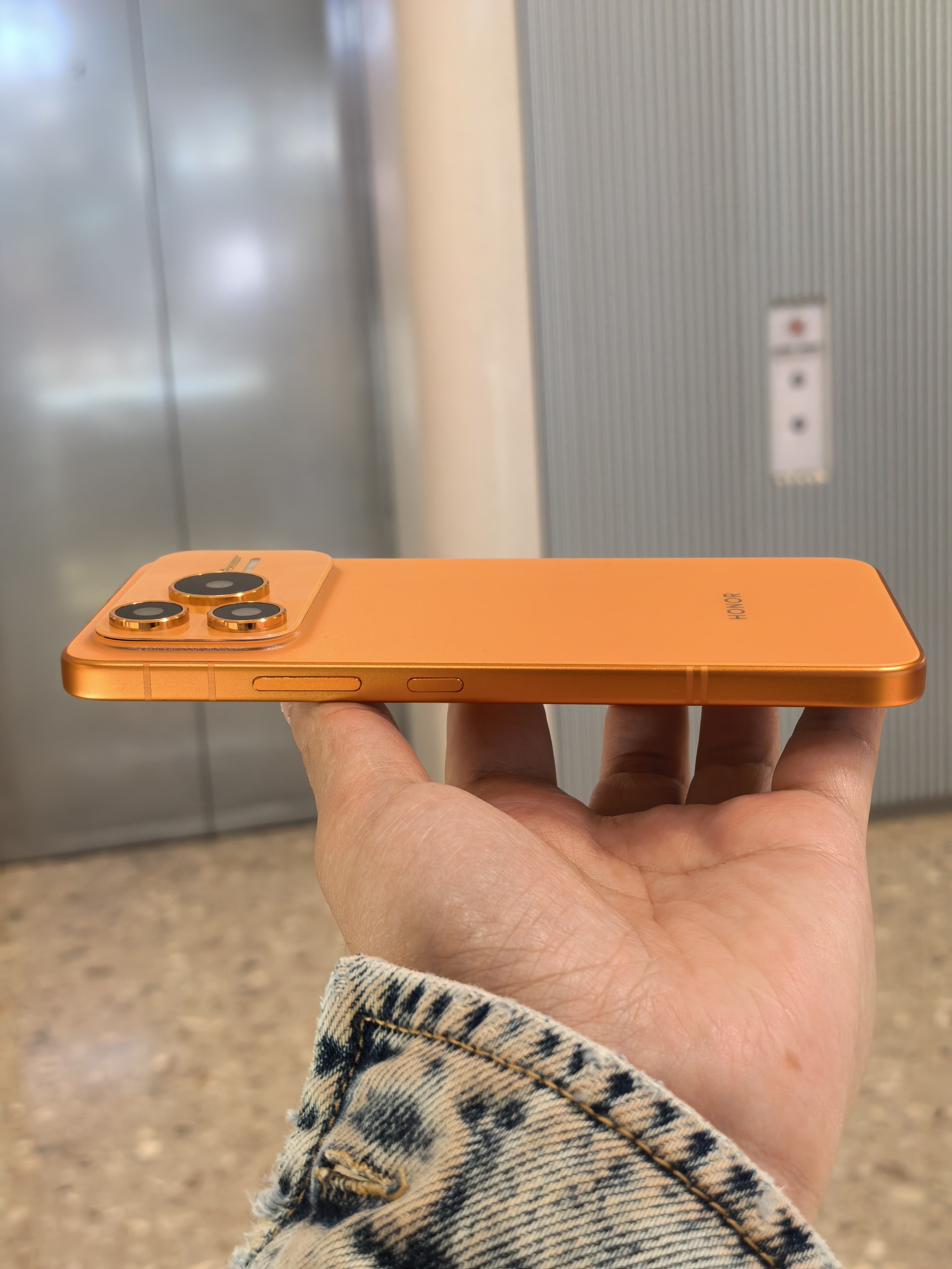 在商场逛街,找朋友拿了台iPhone 17 Pro Max星宇橙色。哦不,看错了看错了,是荣耀Power2。你们说像不像?