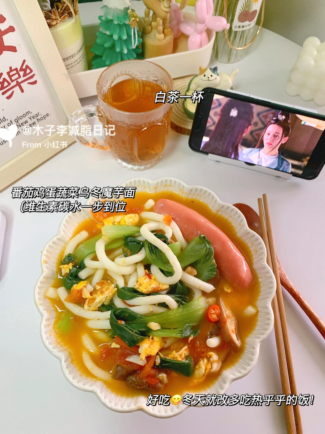 🥙午餐:番茄鸡蛋蔬菜魔芋乌冬面➕白茶