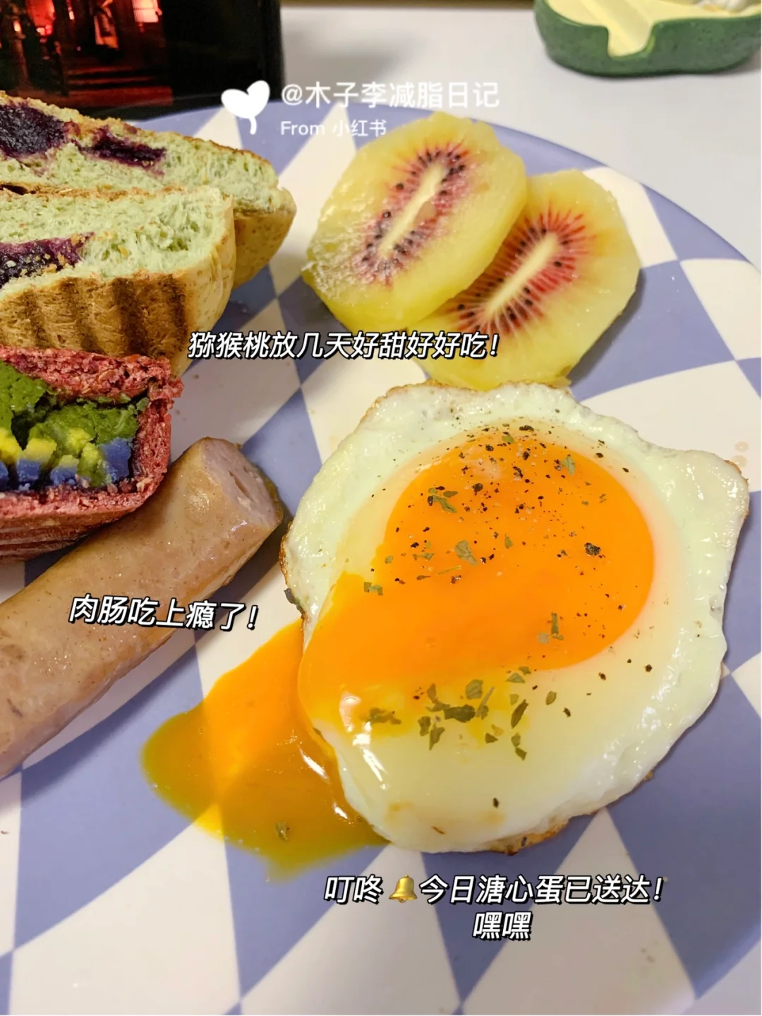 🍳早餐:猕猴桃➕阿胶糕➕黑咖啡➕三色极光➕抹茶紫薯➕煎蛋➕雪莲果