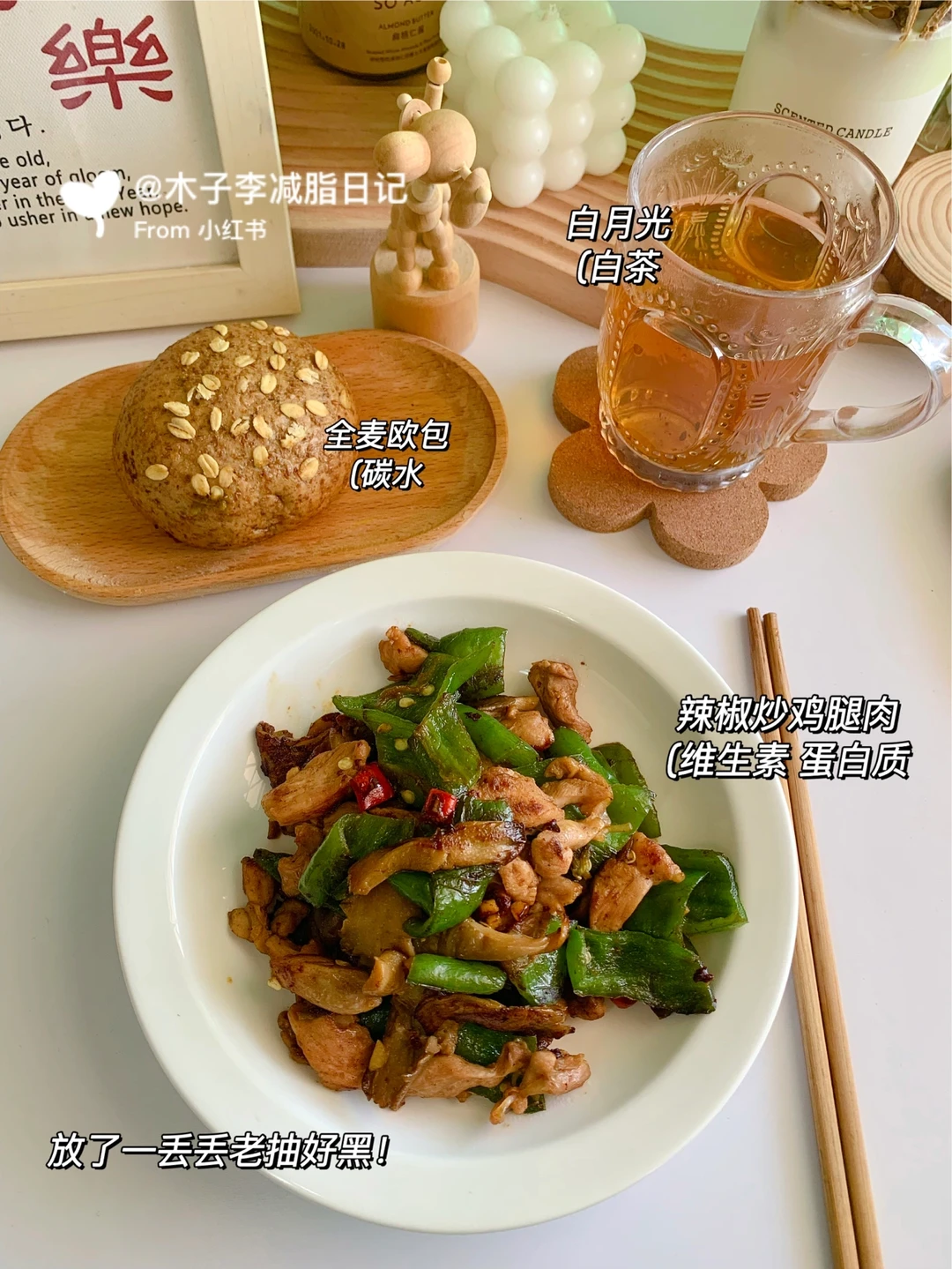 🥙午餐:青椒炒鸡腿肉➕欧包➕白茶