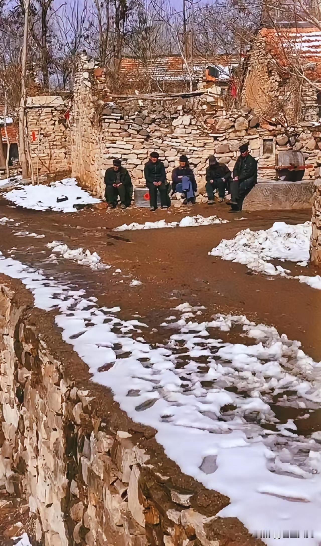 不看手机,话也不多,一坐就是半天。农村的归宿就是墙角。