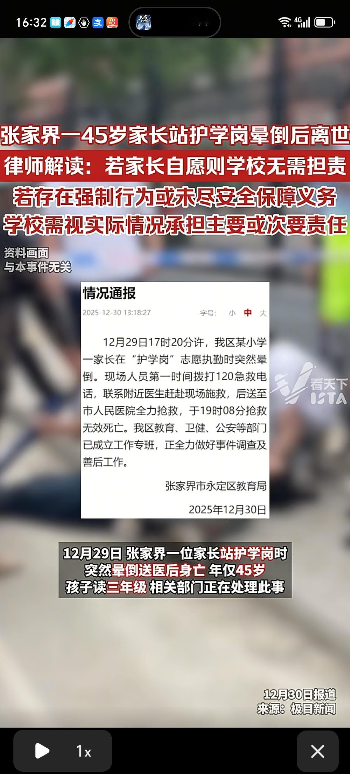 张家界护学岗家长晕倒猝死的事情直接引发了学校和家长的两个矛盾点。一是护学岗是学校、社会,还是家长的责任。二是护学岗的自愿问题咋判定? 现在家里有小学生的家长基本都站过过护学岗,学校每天给家长们分上午、下午轮流排班,没空去就请假。说是要家长们“言传身教”、“家校共育”,给孩子们做好榜样,为了孩子在学校能好好学习,有好的待遇,很少有家长说不去护学岗的。 张家界的这个家长才45岁,能在站岗2分钟晕倒,应该是太疲劳了,没时间休息,可惜人没救回来。家里一大一小两个孩子,一个17岁,一个上小学三年级。 这个事情有律师解读说家长要是自愿的就跟学校没关系。要是有强制执行或者没有尽到安全保障义务,学校视情况承担主要或者次要责任。