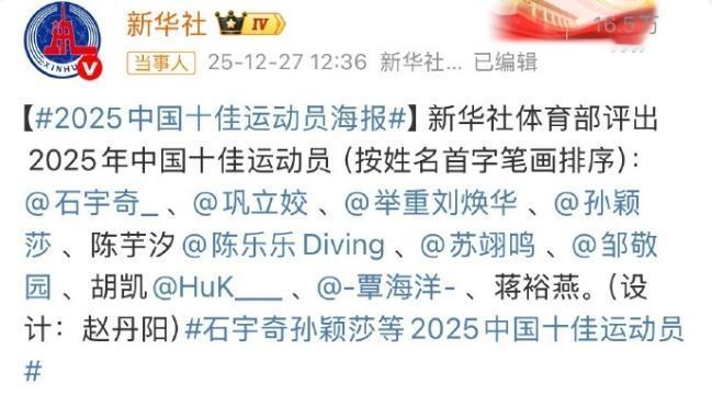 孙颖莎又获殊荣! 她登上了《中国妇女》杂志一月份封面 。 她入选了2025年度有影响力的《中国妇女》时代人物! 另外新华社评选2025年中国十佳运动员,孙颖莎入选。她是国乒唯一入选的球员。 在2025年,孙颖莎获得11个国际赛事的冠军。她蝉联了世乒赛和世界杯的女单冠军。 而且全年在女单世界排名中断层排第一位。