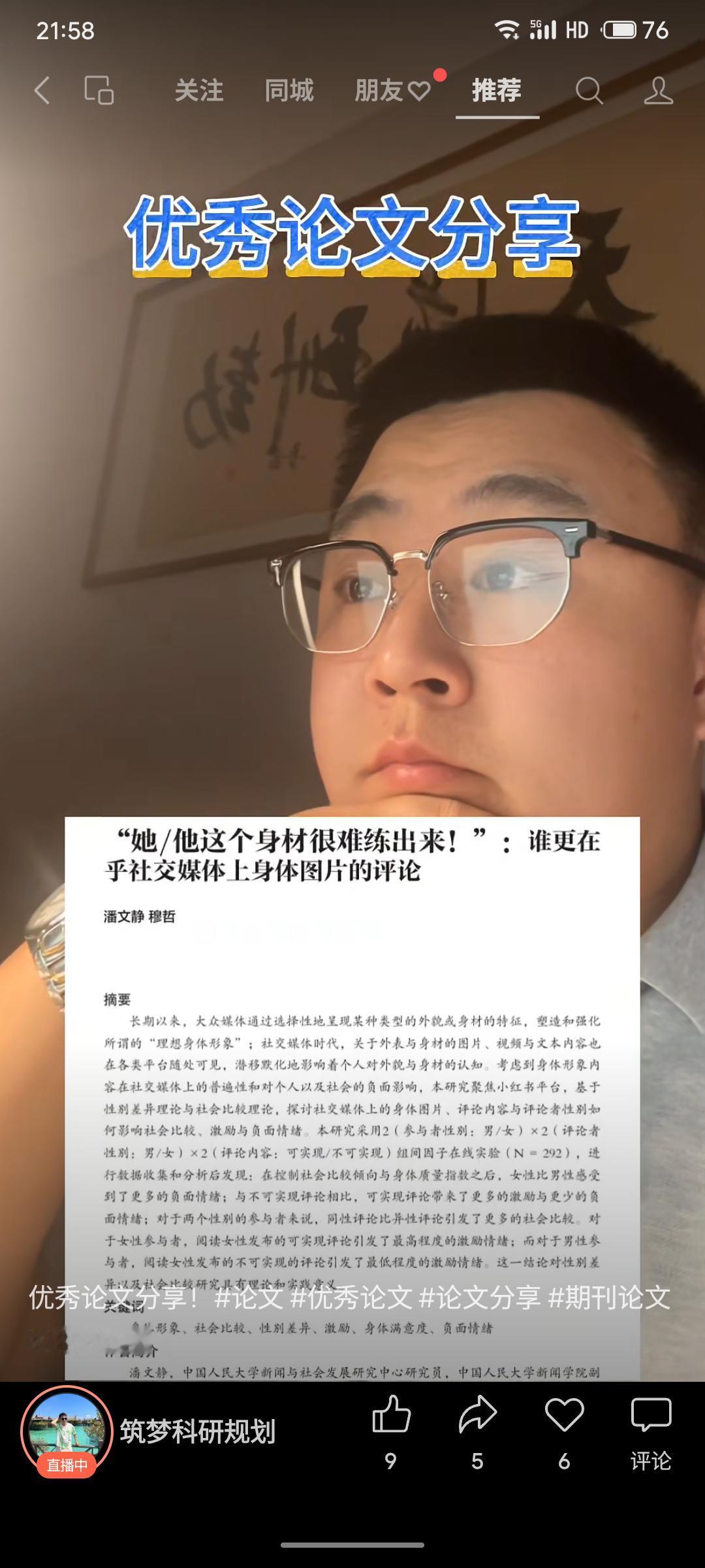潘文静、穆哲基于性别差异与社会比较理论,聚焦小红书平台,通过在线实验研究社交媒体身体图片评论影响。发现女性负面情绪更多,可实现评论激励强,同性评论引发较多社会比较,该结论有理论与实践意义。