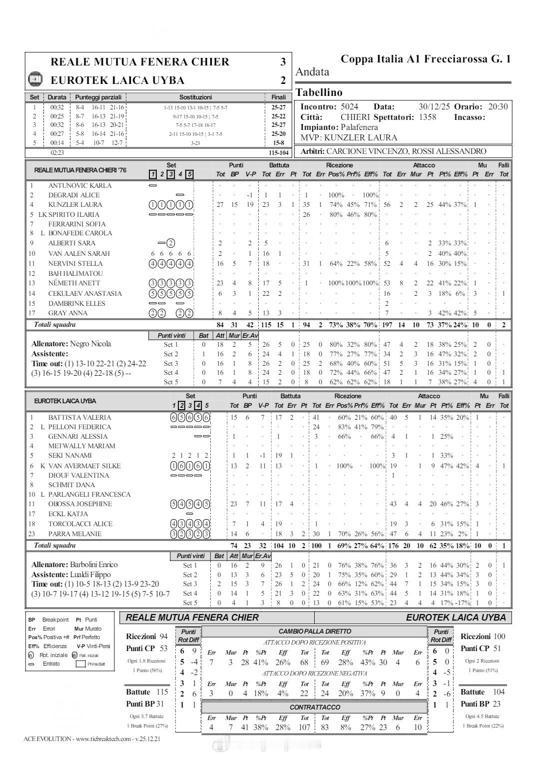 【女排意大利杯基耶里3-2力克布斯托 半决赛战斯坎迪奇】国际排坛战报速递 12月30日基耶里,女排意大利杯1/4决赛,基耶里主场3-2(25-27/25-22/25-27/25-20/15-8)力克布斯托阿斯奇奥,晋级四强,将与斯坎迪奇争夺决赛权。MVP昆兹勒27分、内梅斯23分、内尔维尼16分,奥博萨23分、巴蒂斯塔15分、帕拉14分、范阿沃迈特13分。