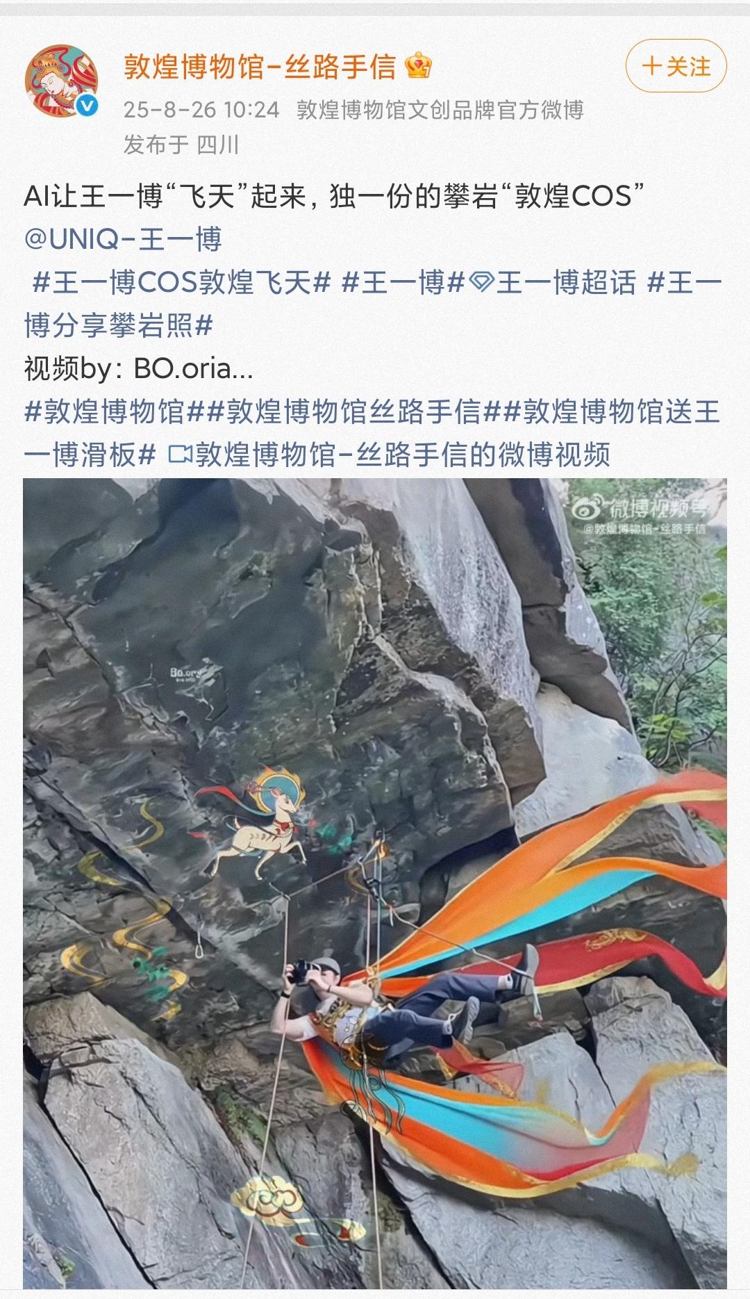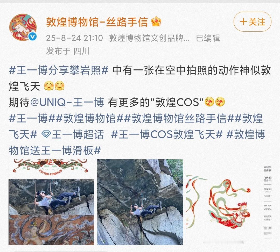 敦煌博物馆又cue王一博了 [捂脸] 不是,现在官博的“活人感”都这么强吗?真可谓反应迅速与时俱进[赞]。 敦煌博物馆和“飞天王一博”,看来真的是太有“缘分”了[捂脸]。 王一博内心os:你们看我像高兴的样子吗? 王一博 王一博探索新境2