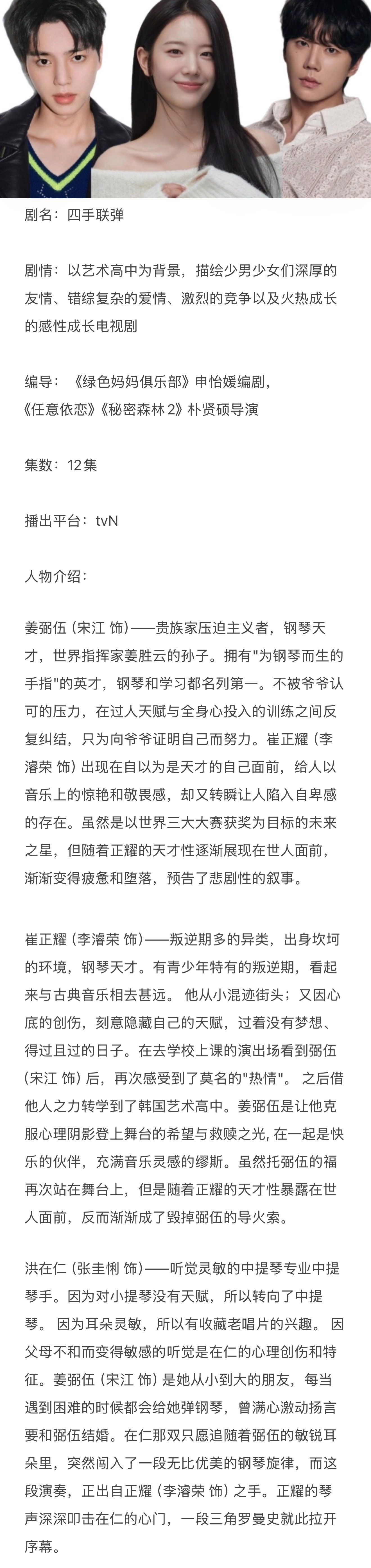 宋江新剧路透宋江新剧设定 宋江新剧《四手联弹》开拍了,设定好有意思!