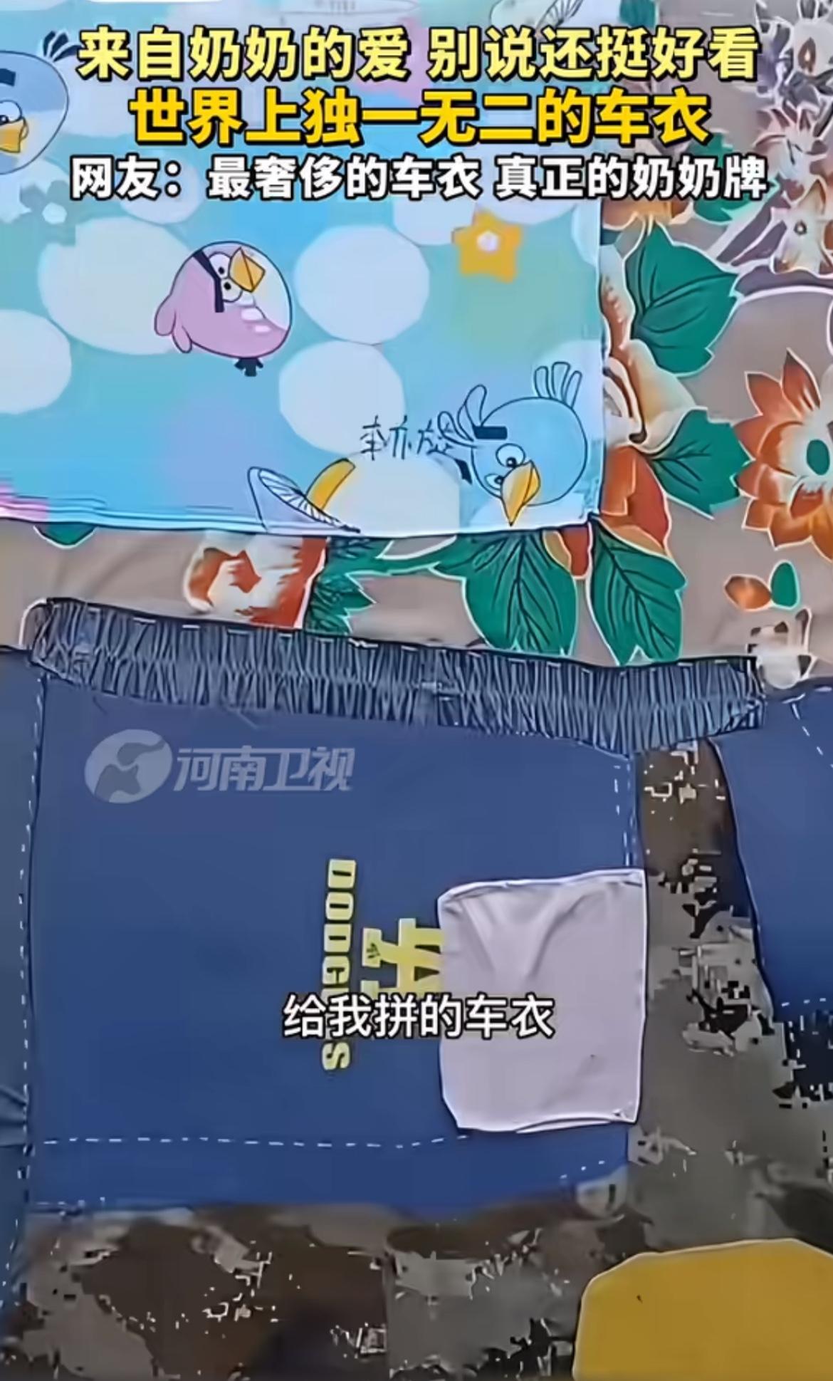 前几天出差,找不着停车的地儿,就把车停奶奶那儿了。等我回来一看,好家伙,我那爱车被奶奶用她的被单缝缝补补裹得严严实实。那被单的花色,红一块绿一块的,在一众车中格外显眼。我知道,奶奶这是怕我车被晒着、淋着,才这么用心。虽然这“装扮”有点土气,但我心里暖乎乎的。这一针一线里,满满的都是奶奶对我的爱,比啥高级车衣都珍贵。以后啊,我得常回来看奶奶,也让她知道我对她的爱。
