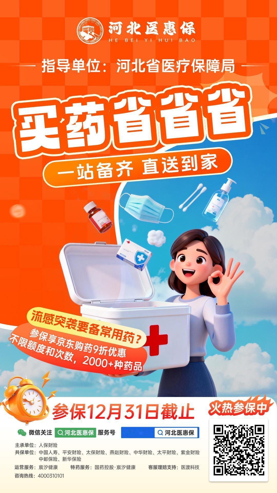 在河北,很多家庭年底都在做同一件事,把2026年的医疗风险提前兜住。 河北医惠保,就是不少人今年重点关注的选择。 冬天一到,感冒、肺炎、住院检查的概率明显上升, 更扎心的是,真正拖垮家庭现金流的,往往不是“医保内”,而是医保外那一大截自费。 河北医惠保更突出的几项“硬优势”: 1)医保外住院报销更给力:对非既往症人群的医保外住院费用,赔付比例最高可到60%,更贴近家庭最怕的“自费黑洞”。 2)保障额度更厚:覆盖住院(医保内+医保外)、国内特药、海外特药、CAR-T等五大责任,全年最高可达600万,真正把“大病不敢治”的焦虑往下压。 3)特药覆盖更广、门槛更低:国内+海外共95种特药,免赔额为0;非既往症人群报销比例更高,既往症人群也有对应保障安排。 4)把前沿疗法纳入保障:CAR-T这类费用高、但可能改变治疗路径的方案被纳入责任,让“有希望但太贵”的困境少一点。 5)异地就医更友好:在国内其他省份二级及以上医保定点医院普通部住院,符合约定的费用也可按责任赔付,适合跨省就医、京津冀流动就医的现实需求。 6)服务体系更实用:围绕防病、用药、就医通道等提供多项健康管理服务,从“治病”延伸到“管健康”,对忙碌家庭更省心。 产品自身优势,更像一款“政府背书的普惠补充”: 1)政府指导更可信赖; 2)对参保人群的限制更少,不限年龄、职业、健康状况,只要是河北基本医保参保人、新市民等符合条件人群即可参保; 3)同时省内部分医院逐步推动院内直赔/出院结算,减少跑票据、垫资的麻烦。 千万记住,参保截止12月31日。