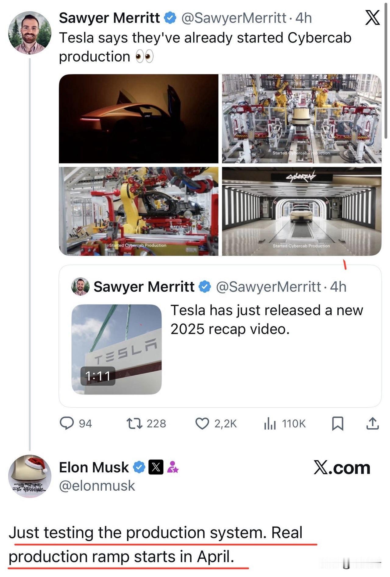 埃隆·马斯克已明确确认,特斯拉无人驾驶出租车Cybercab的量产计划于2