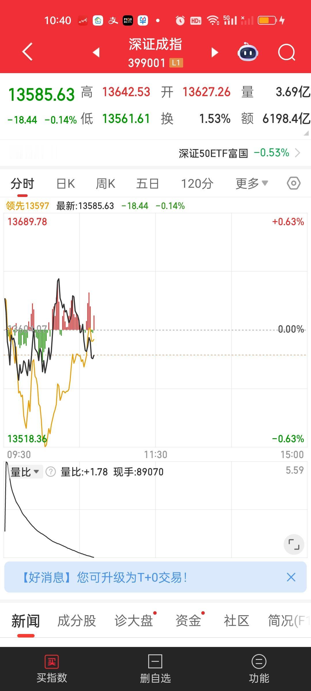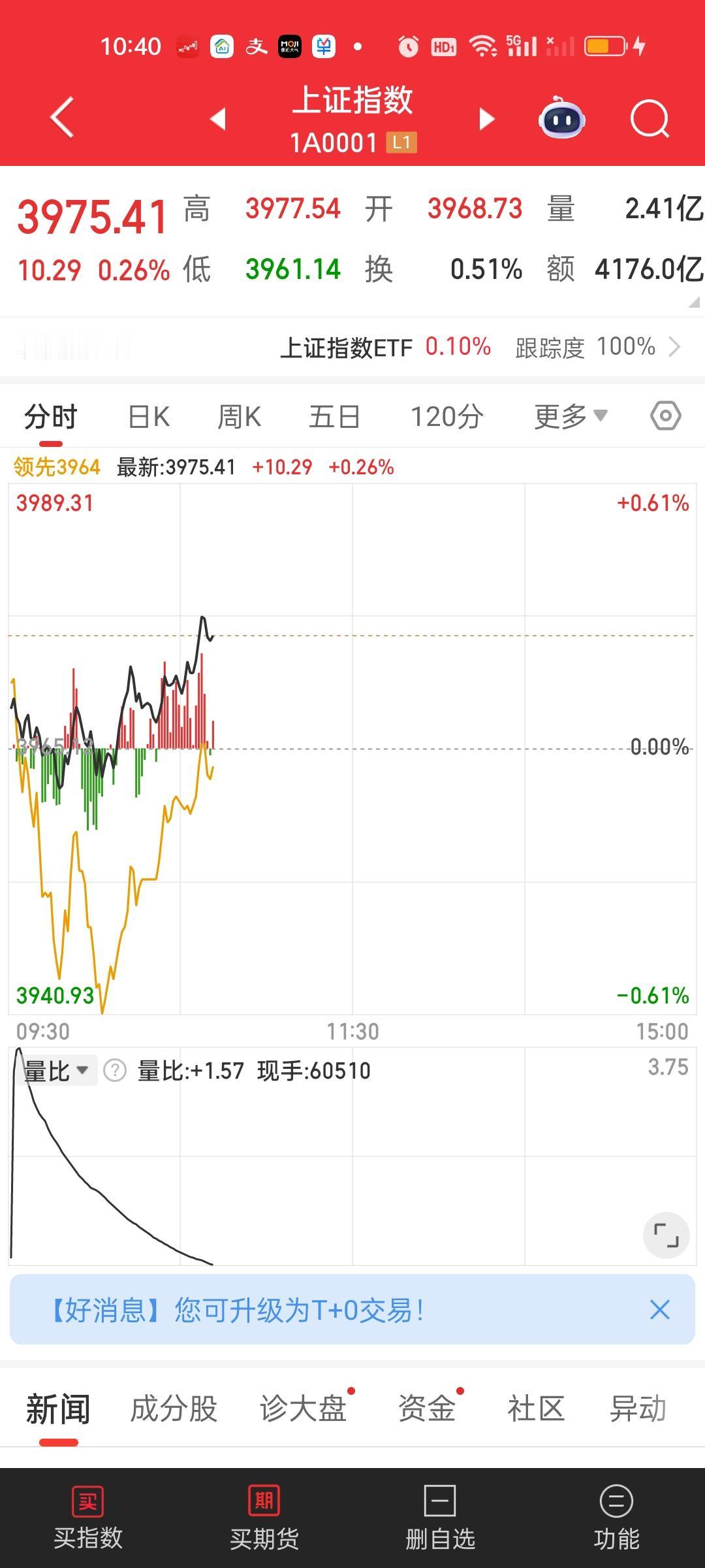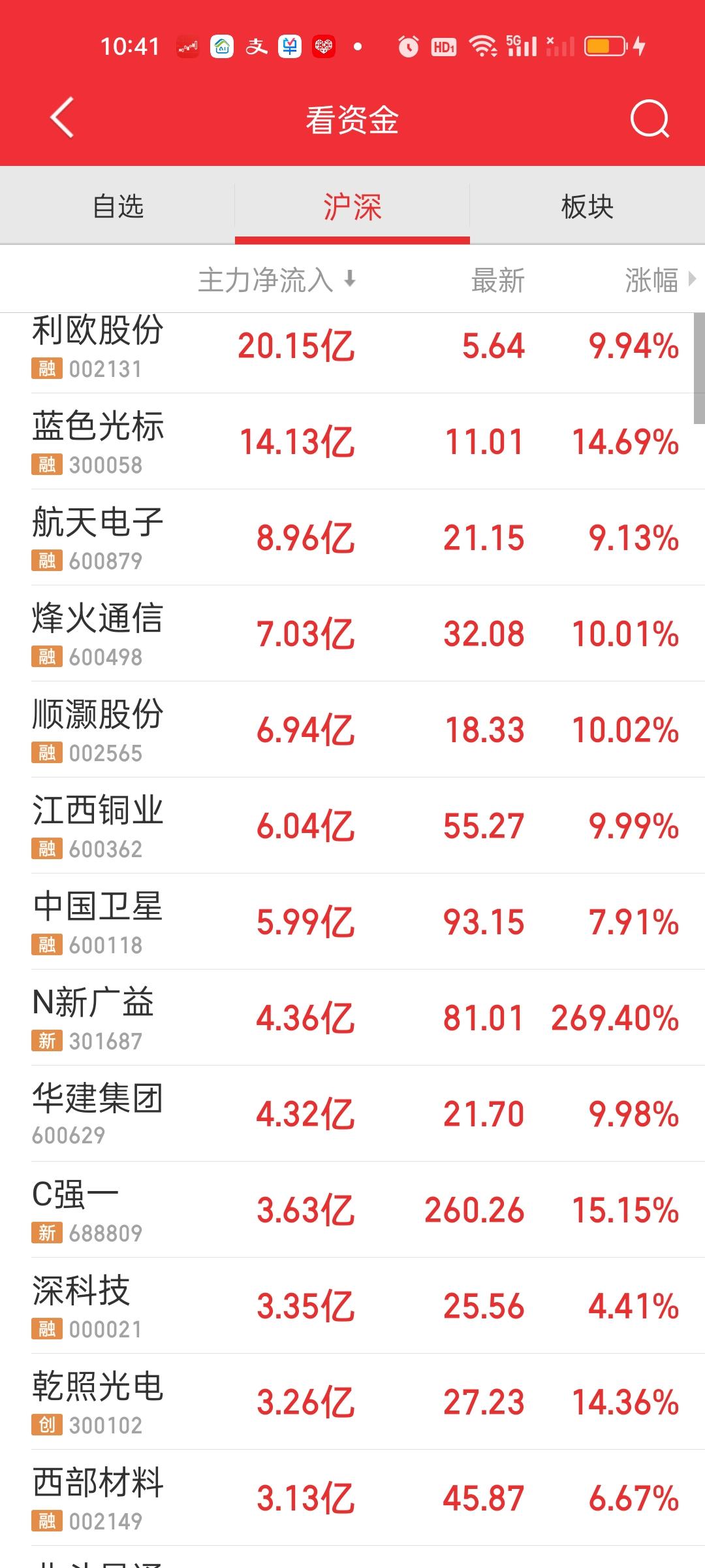 中午收盘了,涨跌家数没有变化,成交量也没啥变化。但大盘资金又多流出了108亿。主力资金净收入超10亿的个股增加了2家,中国卫星和航天电子。主力资金净流出的个股也新增了2家,工业富联和天孚通信。昨天还在说航空肮天能不能反包,今天就直接反包了!