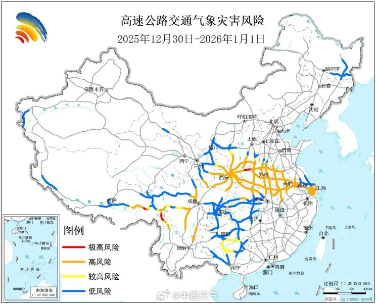 #寒潮暴雪大风3预警迎跨年#【#元旦出行这些路段需防结冰湿滑#】当前一股跨年寒潮正在影响我国,中央气象台今晨连发寒潮、暴雪、大风3个蓝色预警,今天大范围雨雪天气,进入最强时段。在这轮跨年雨雪过程中,甘肃东部、陕西中南部、山西南部、河南西部、湖北西北部等地为降雪核心影响区域,上述地区新增积雪深度可达2至10厘米,局地或超10厘米。经综合研判和应急会商,中国气象局启动重大气象灾害(寒潮、暴雪)四级应急响应。2025年12月31日,陕西、山西、河南和湖北等部分地区将有雨雪过程,可能造成路面湿滑、积雪结冰,假期返乡或提前出游等自驾活动的风险将加大,建议合理安排出行计划。2026年元旦期间:江苏、湖北、四川、云南、西藏等地境内的沈海、京沪、长深、沪陕、沪蓉、沪渝、京昆、包茂、渝昆以及G214、G219和G318等公路部分路段需防范小雪或雨夹雪天气造成的道路结冰、路面湿滑对交通出行的不利影响。网页链接